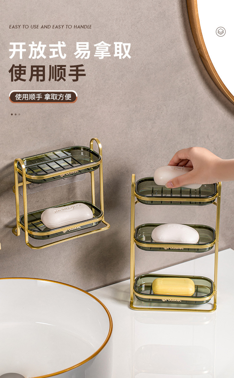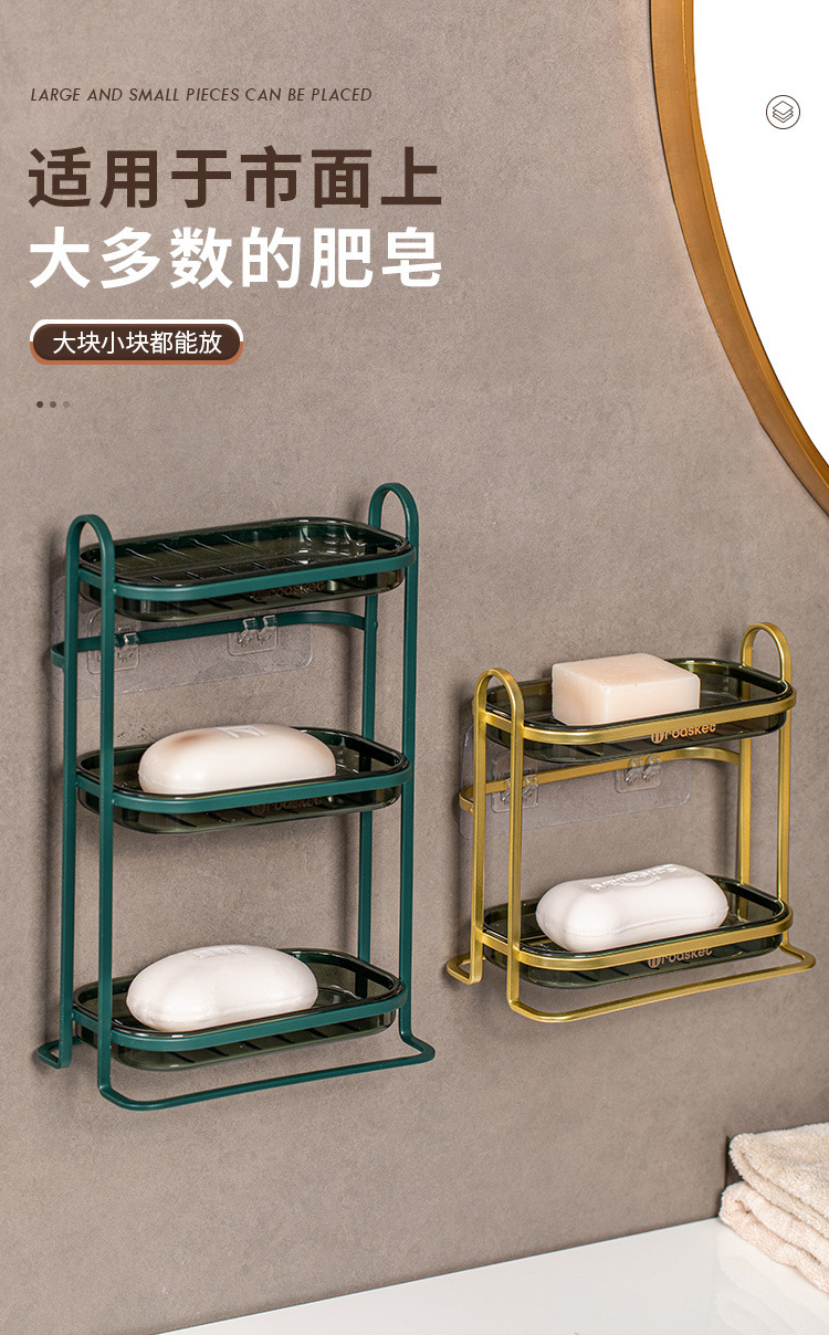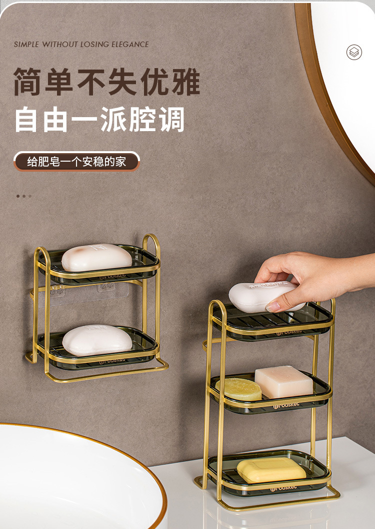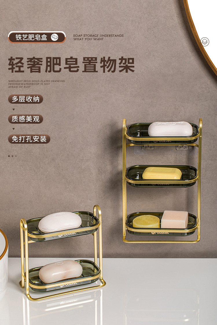 철 비누 상자 욕실 더블 레이어 3 레이어 펀치없는 벽걸이 형 배수 보관함 라이트 럭셔리 비누 보관함스토어 가기