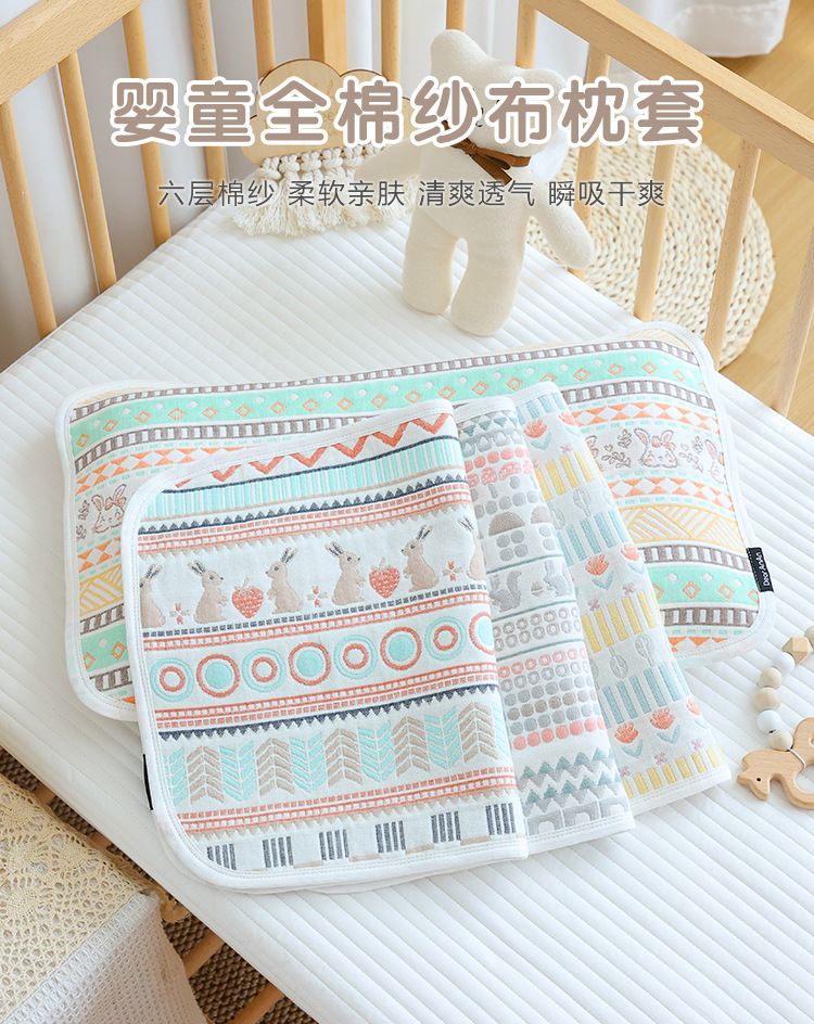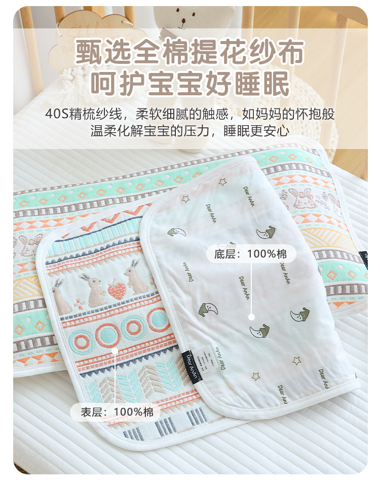 这是一款全棉纱布的宝宝枕巾,非常的吸汗透气