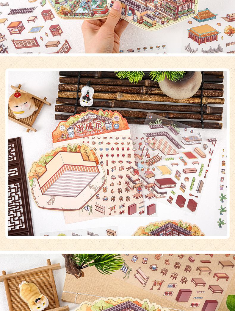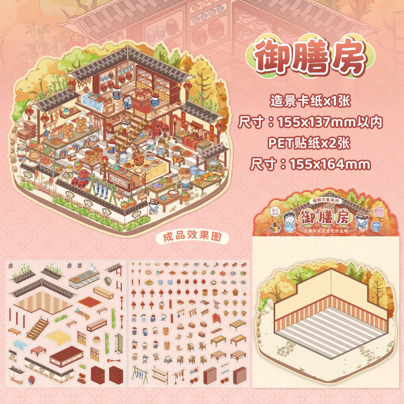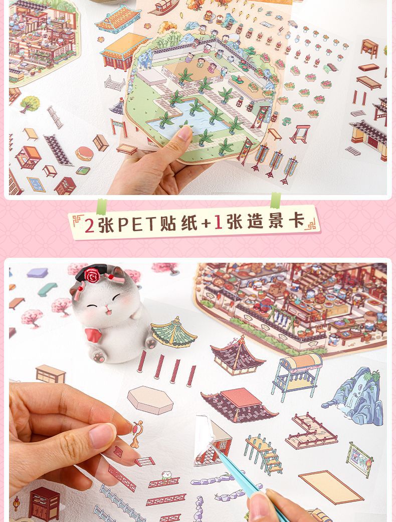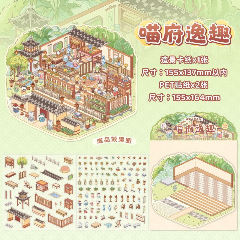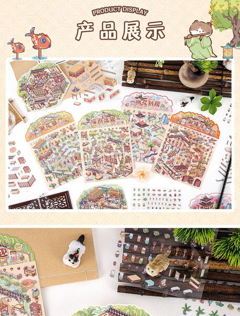 야옹 로얄 비엔티안 중국 스타일 저장 풍경 스티커 골동품 안뜰 몰입 형 DIY 마이크로 스케일 장면 퍼즐 스티커스토어 가기