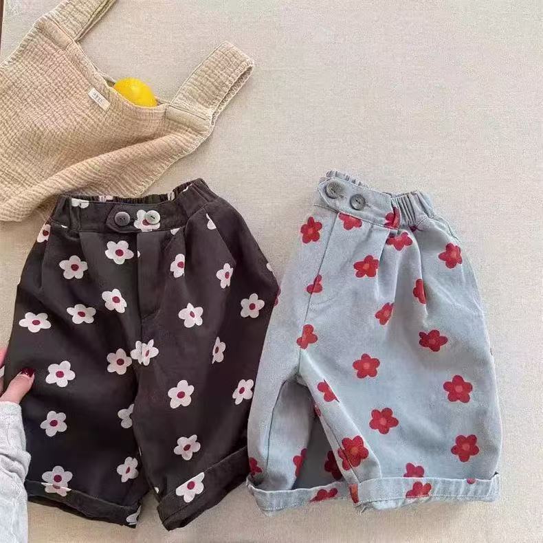 여아 여름 한국식 크롭 팬츠, 여아 여름 스타일 프린트 아우터 반바지, 아동 여름 바지, 아동복스토어 가기