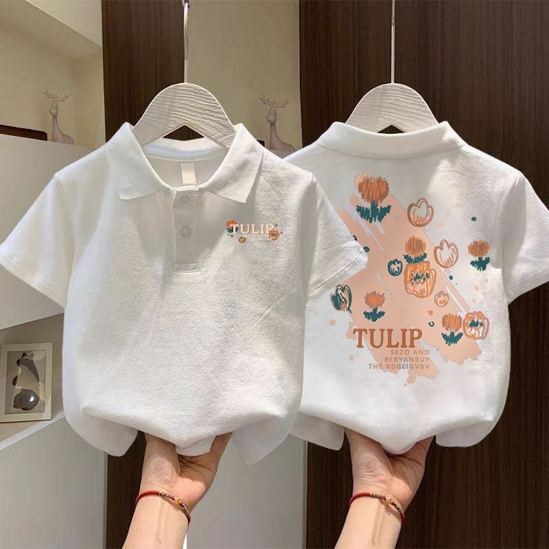 소녀 폴로 셔츠 반팔 면 어린이 옷깃 티셔츠 여름 느슨한 캐주얼 어린 소녀의 귀여운 만화 탑