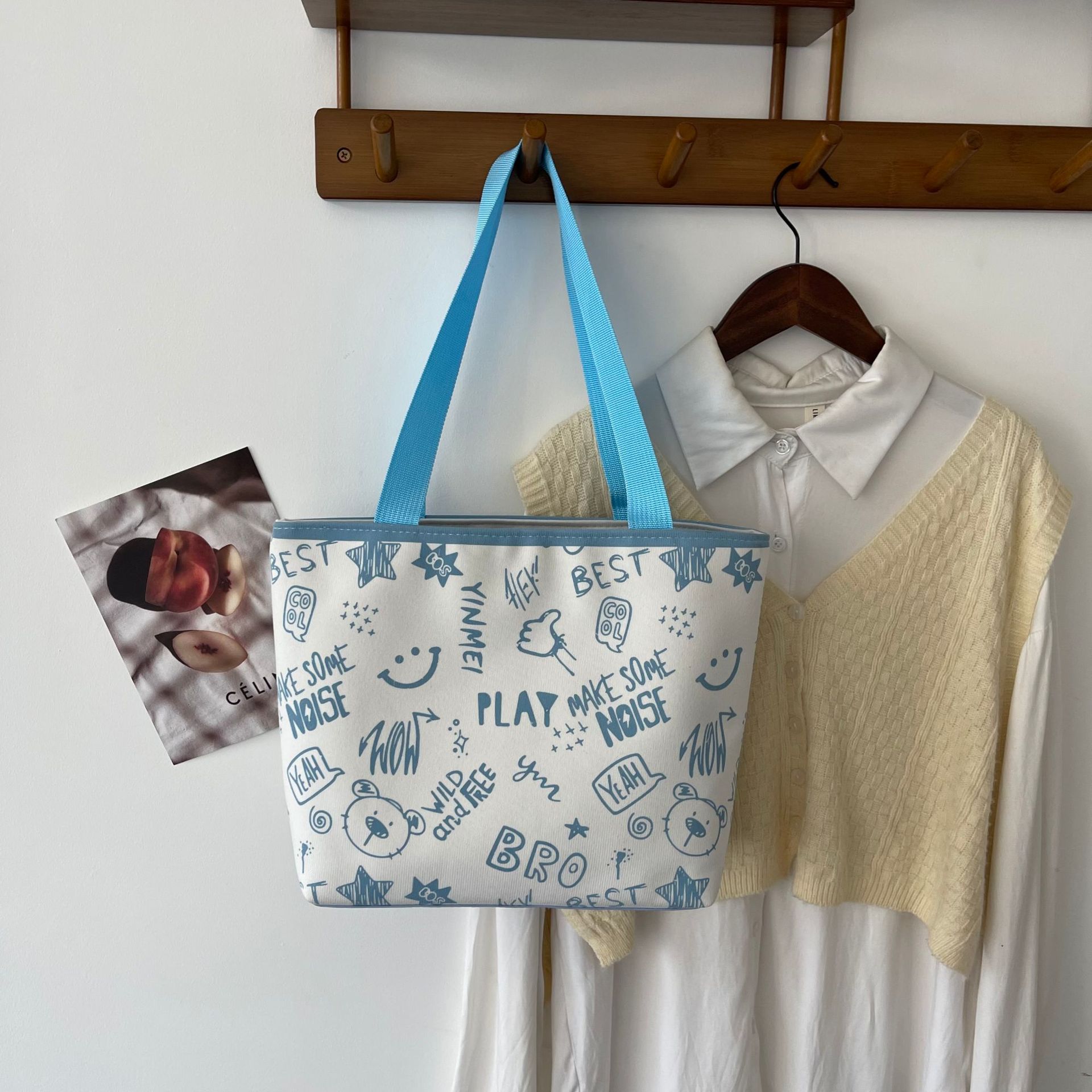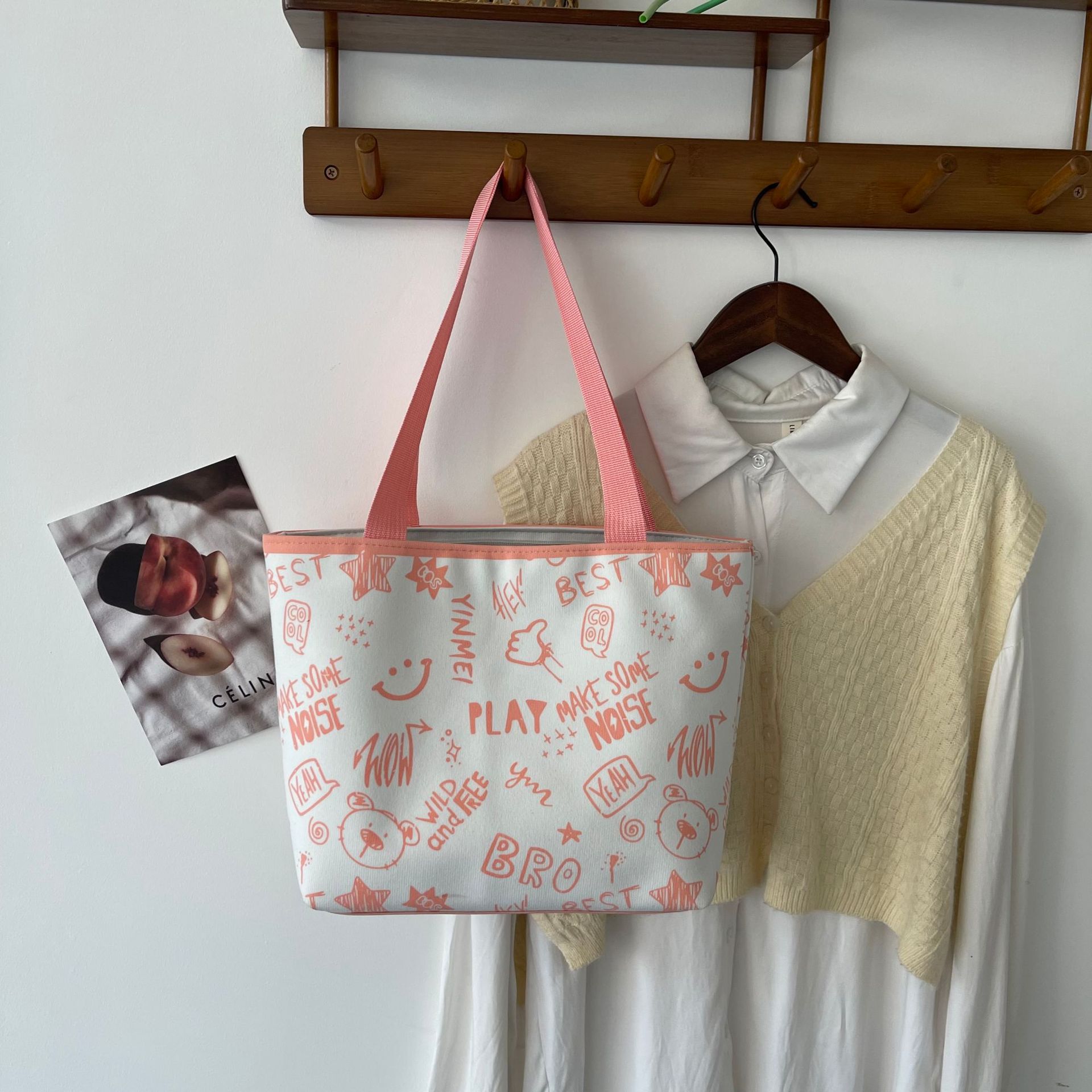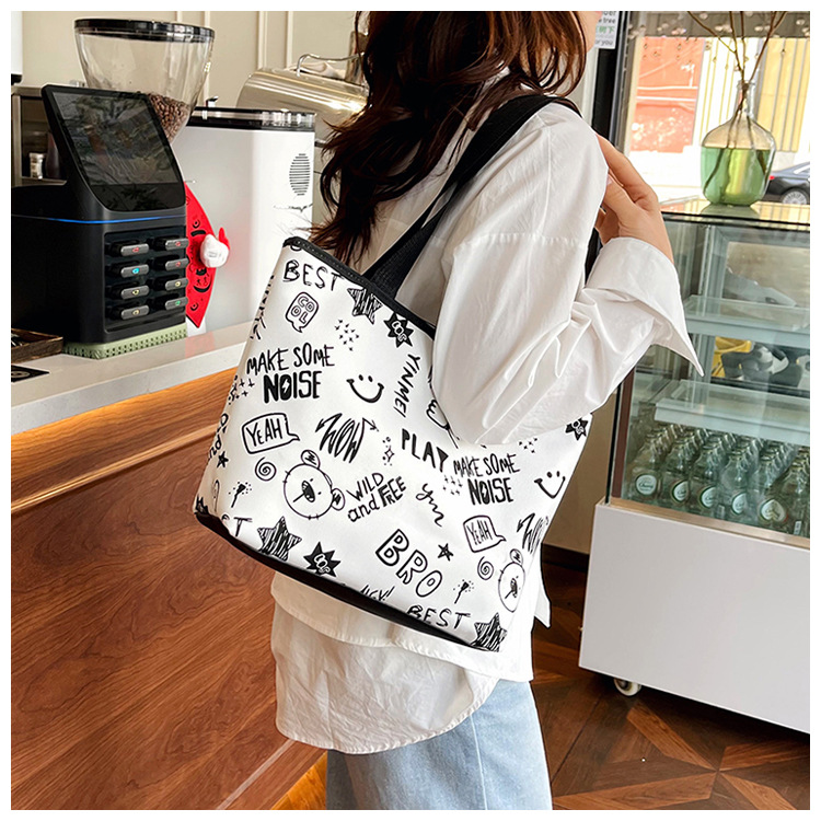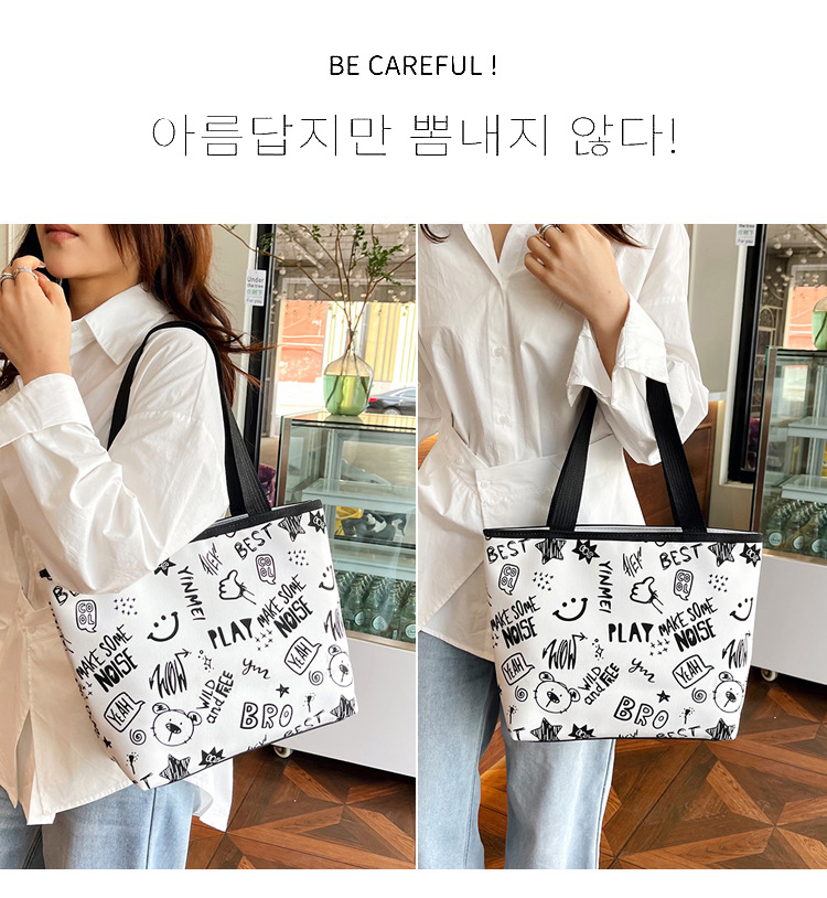대용량 토트 백 귀여운 만화 프린트 숄더 백 2025 여름 새로운 달콤한 예술적 스타일 겨드랑이 가방스토어 가기