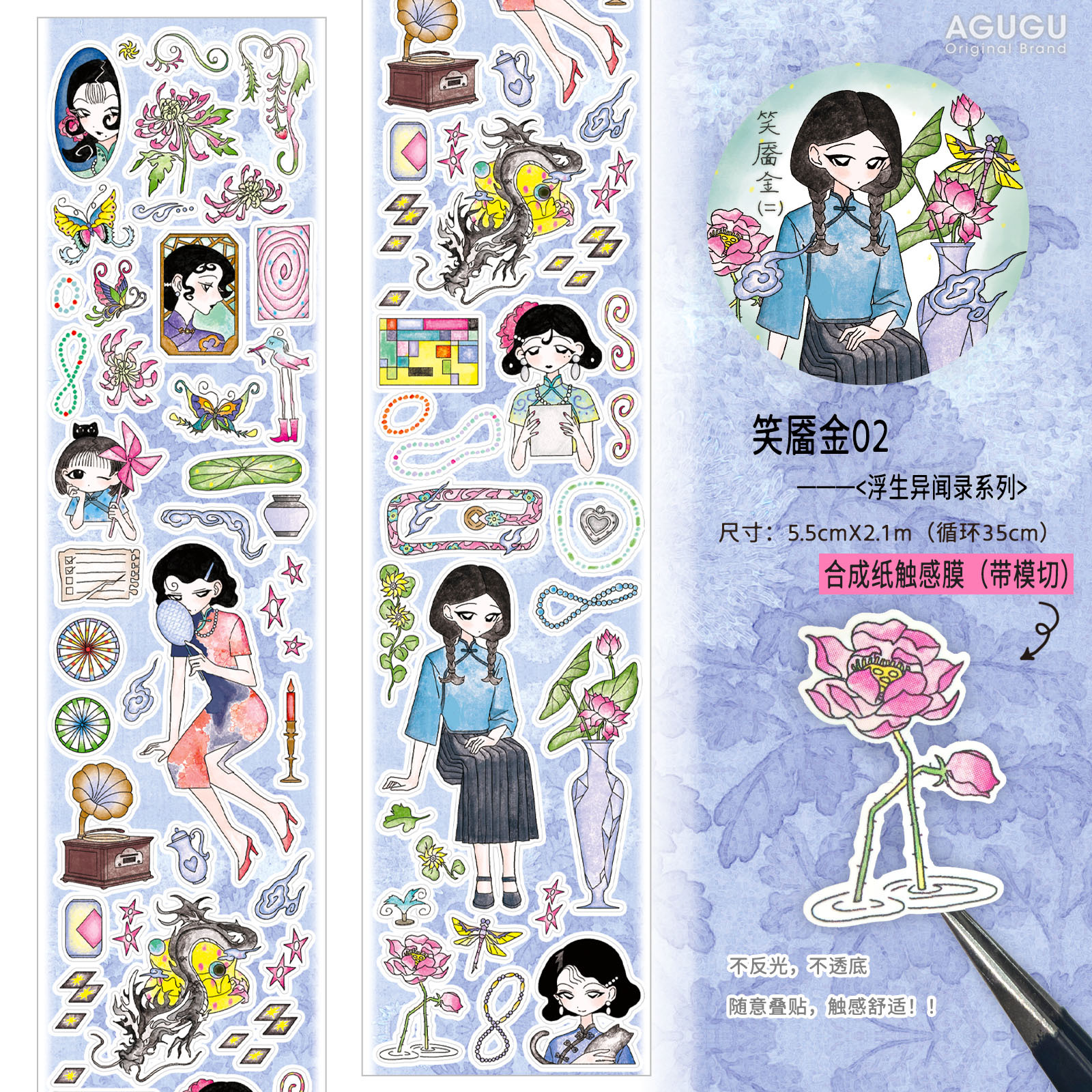 AGuGu 테이프 부동 소재 애완 동물 합성 종이 및 종이 손 계정 장식 재료 플래시 모래 절단 필름 테이프스토어 가기