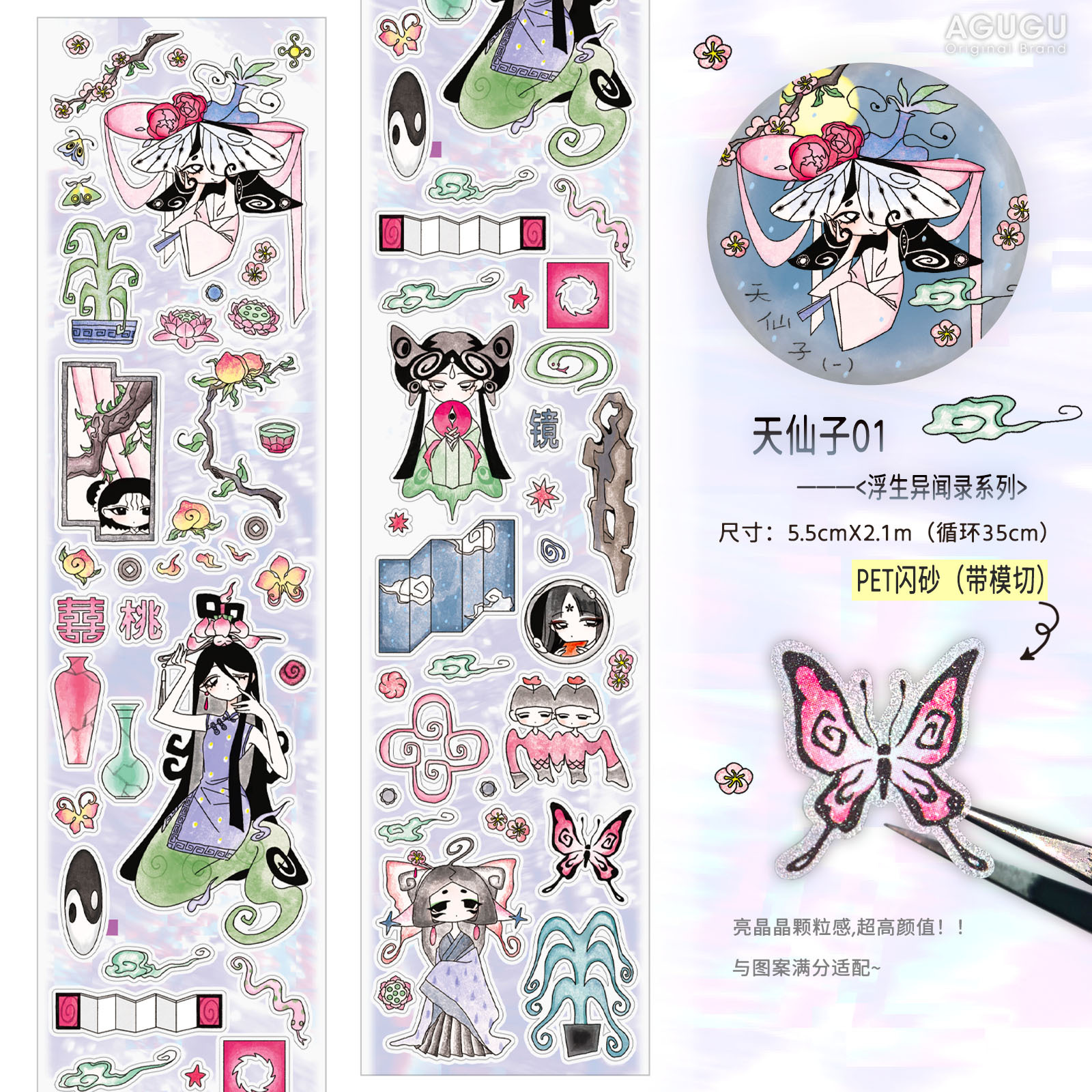 AGuGu 테이프 부동 소재 애완 동물 합성 종이 및 종이 손 계정 장식 재료 플래시 모래 절단 필름 테이프