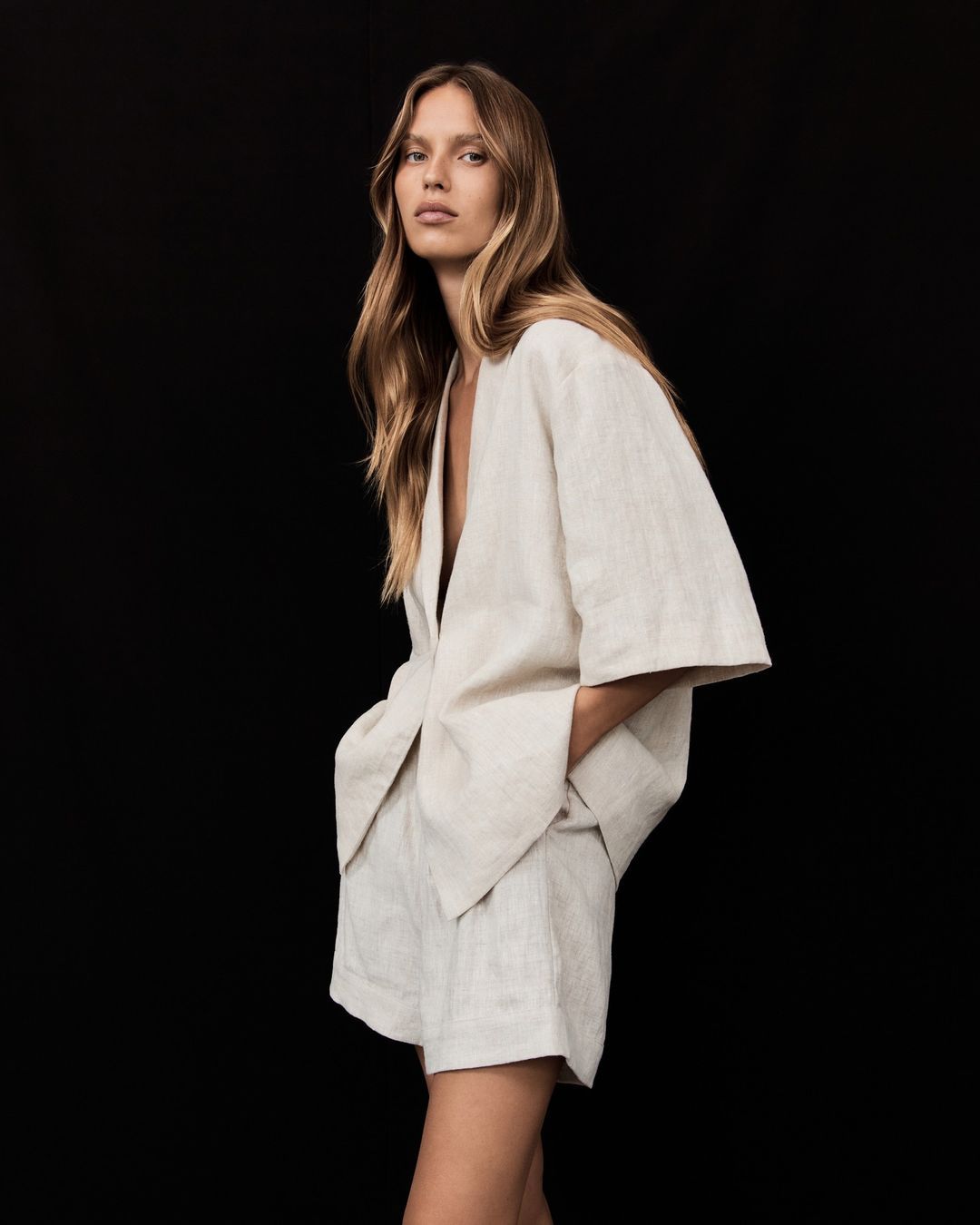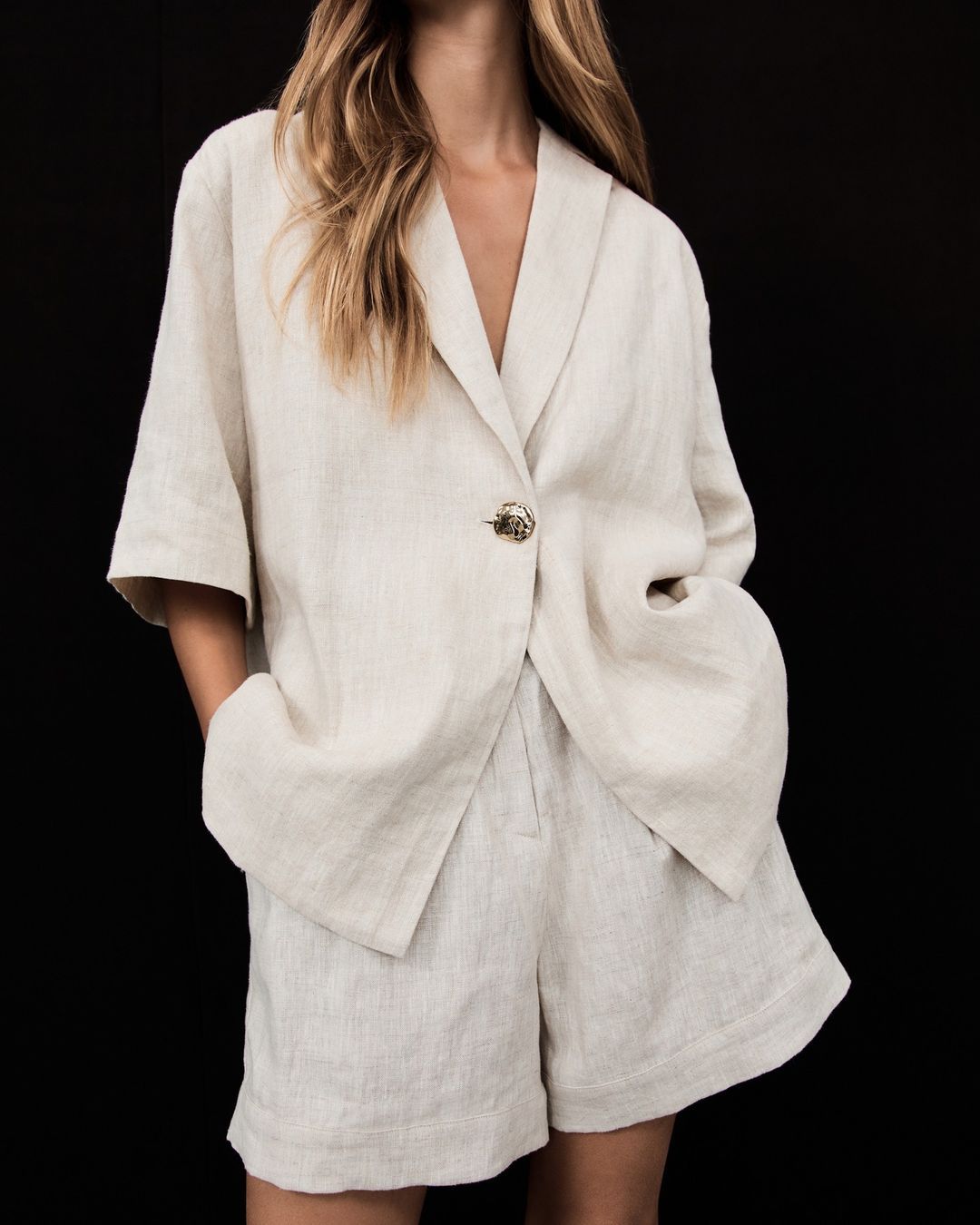 국경 간 유럽과 미국의 여성 시신 폭발 캐주얼 루즈 V 넥 금속 버클 탑 하이 허리 반바지 단색 세트스토어 가기