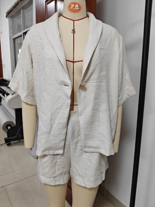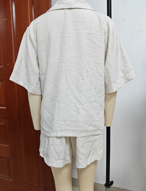 국경 간 유럽과 미국의 여성 시신 폭발 캐주얼 루즈 V 넥 금속 버클 탑 하이 허리 반바지 단색 세트