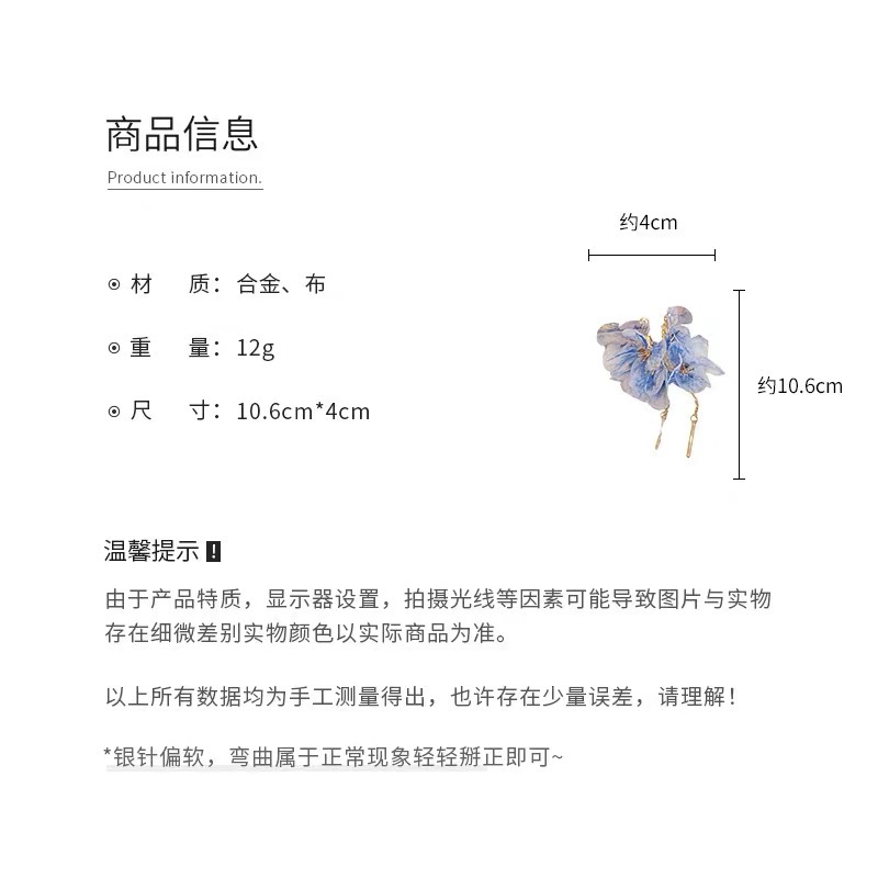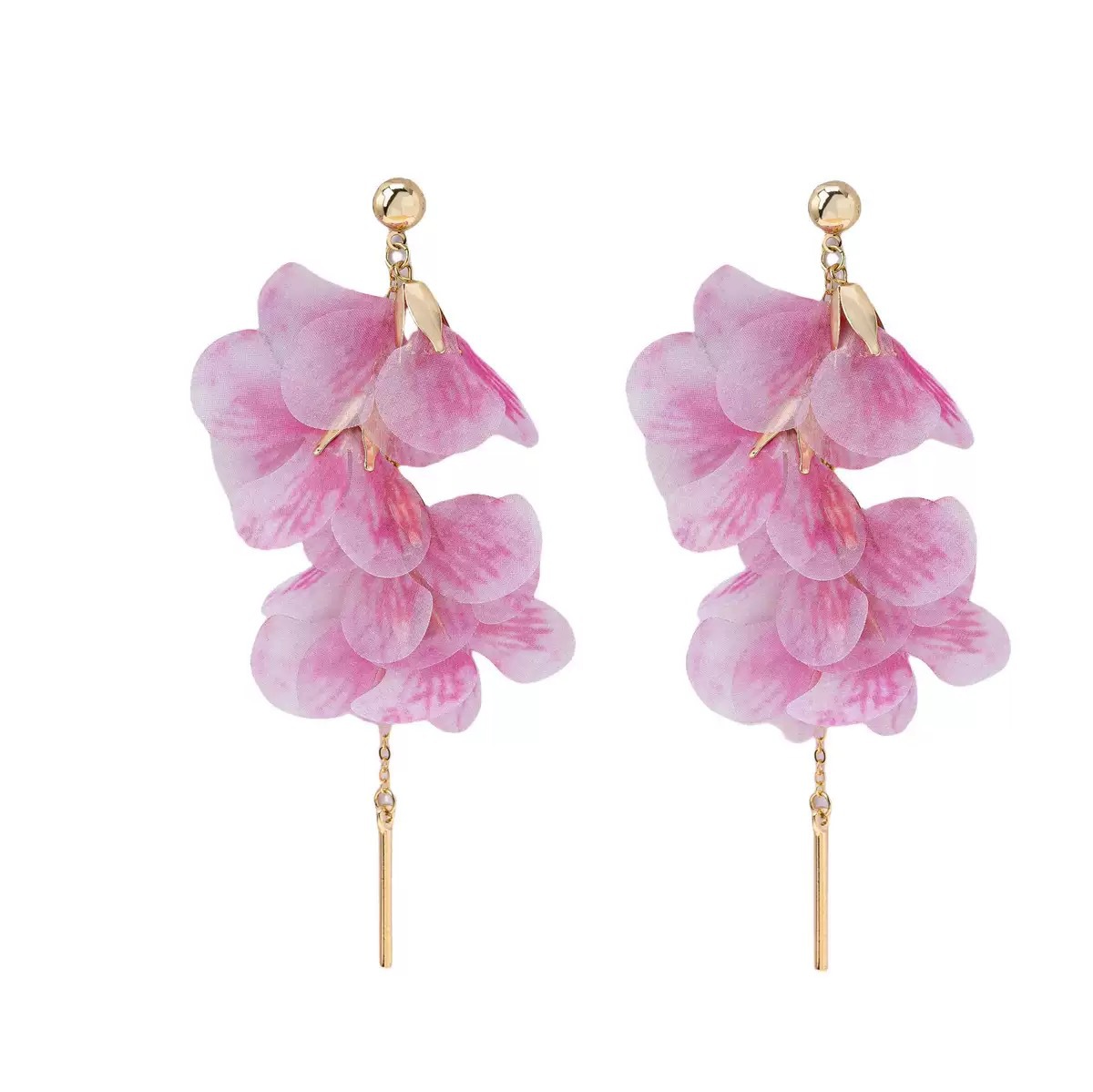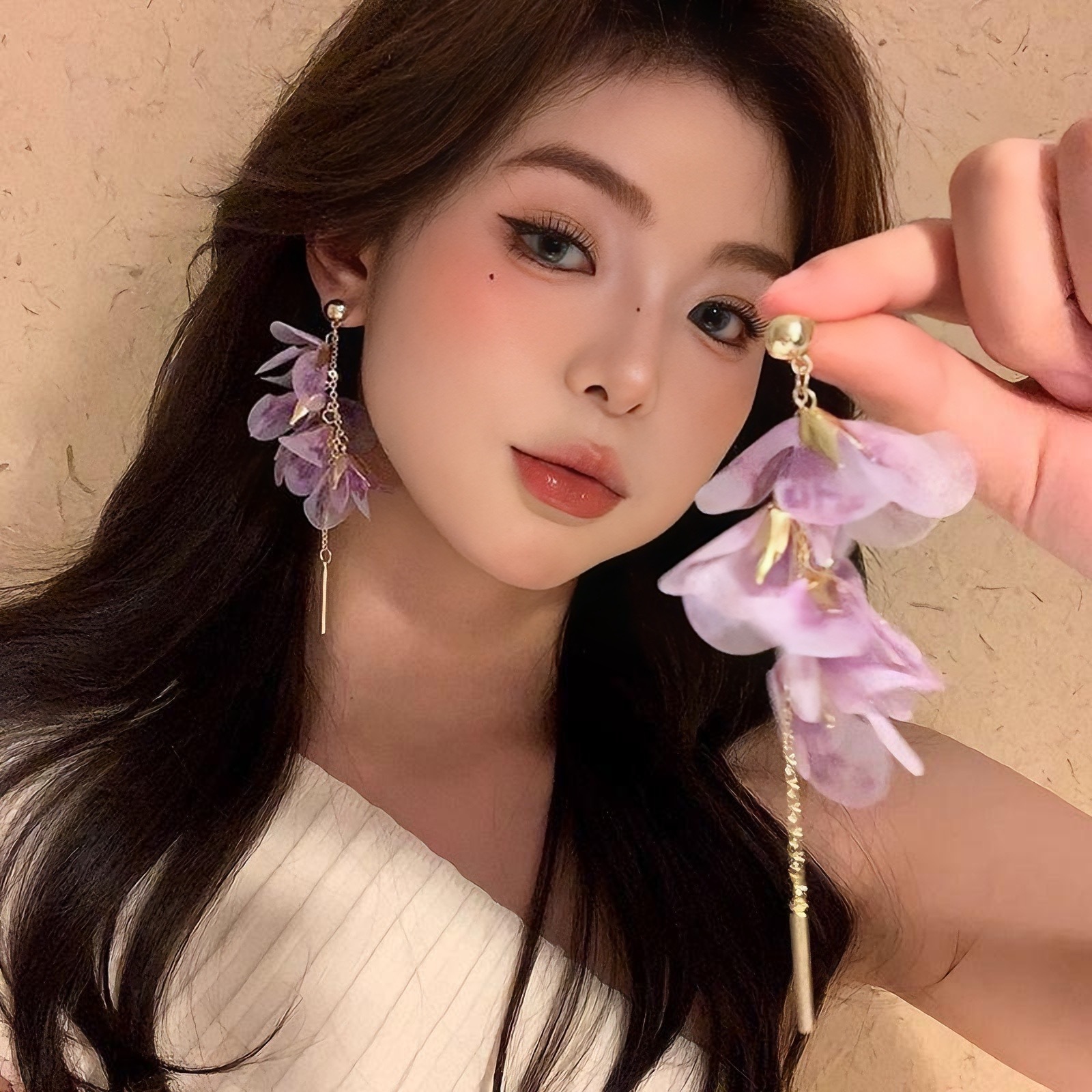 여성을 위한 슈퍼 요정 보라색 메쉬 꽃잎 태슬 귀걸이, 달콤한 스타일의 귀걸이, 절묘하고 아름다운 귀걸이, 독특하고 과장된 귀걸이
