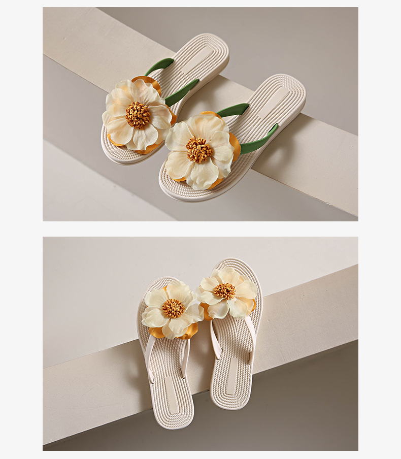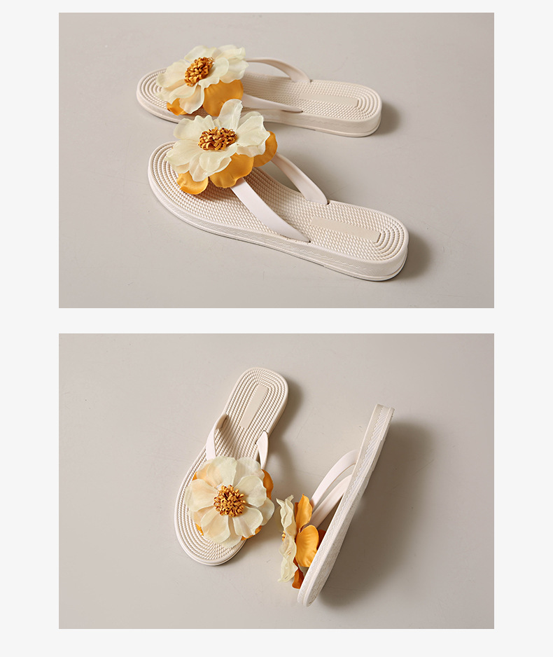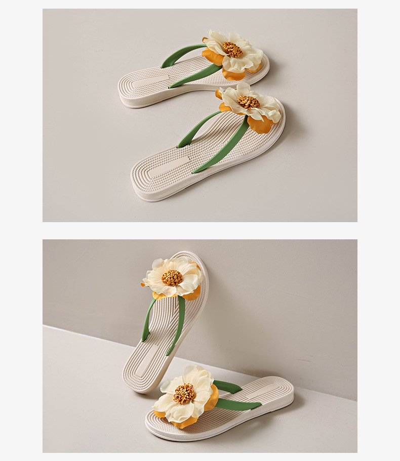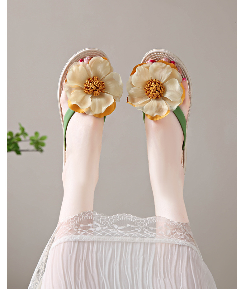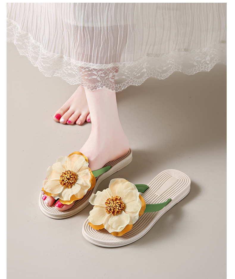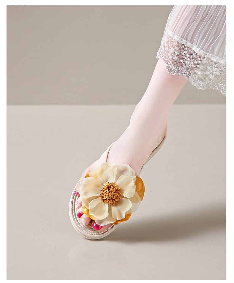 니치 페어리 스타일 플랫 힐 플립 플롭 여성 여름 패션 밀짚 꽃 플랫 목가적 인 홀리데이 비치 스플린트 슈즈스토어 가기