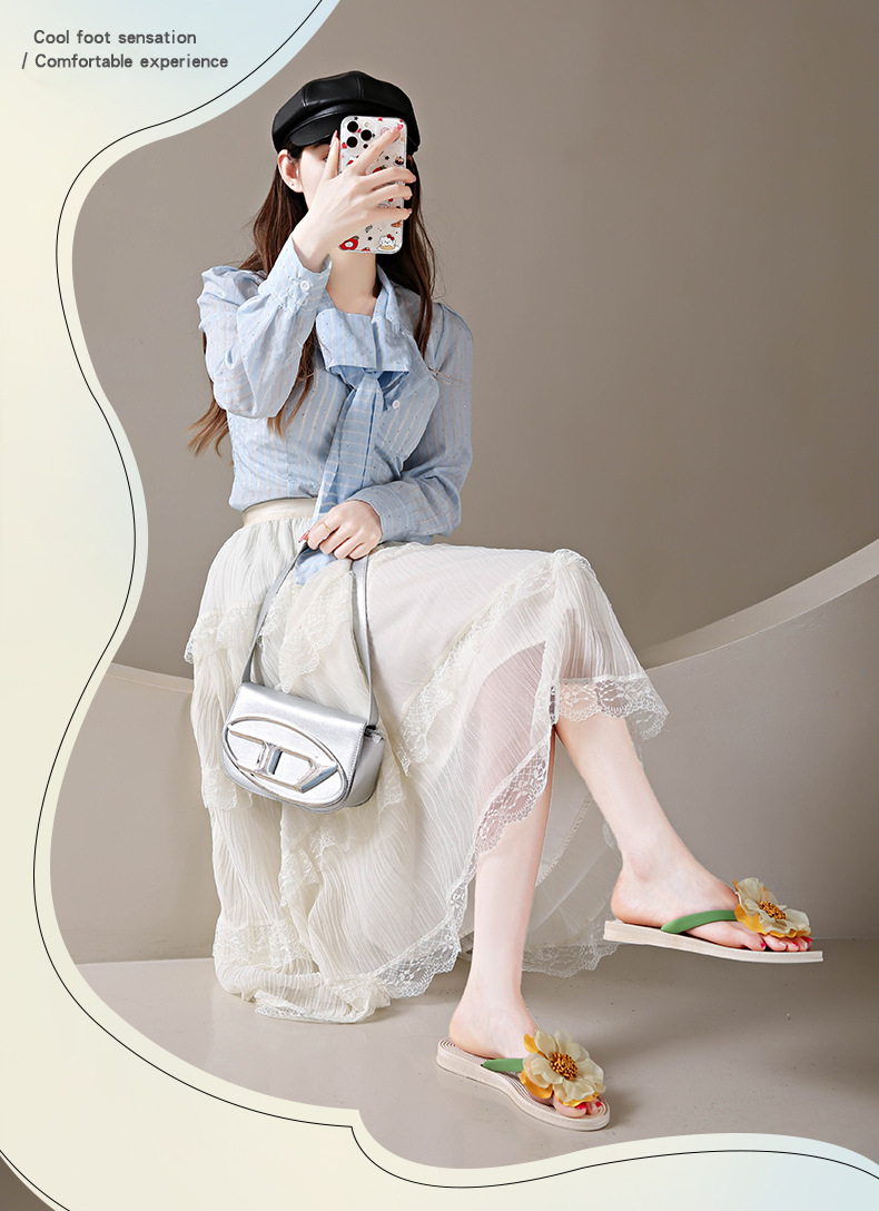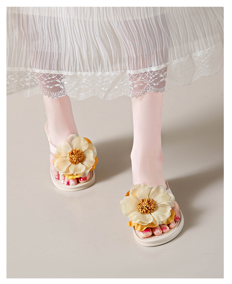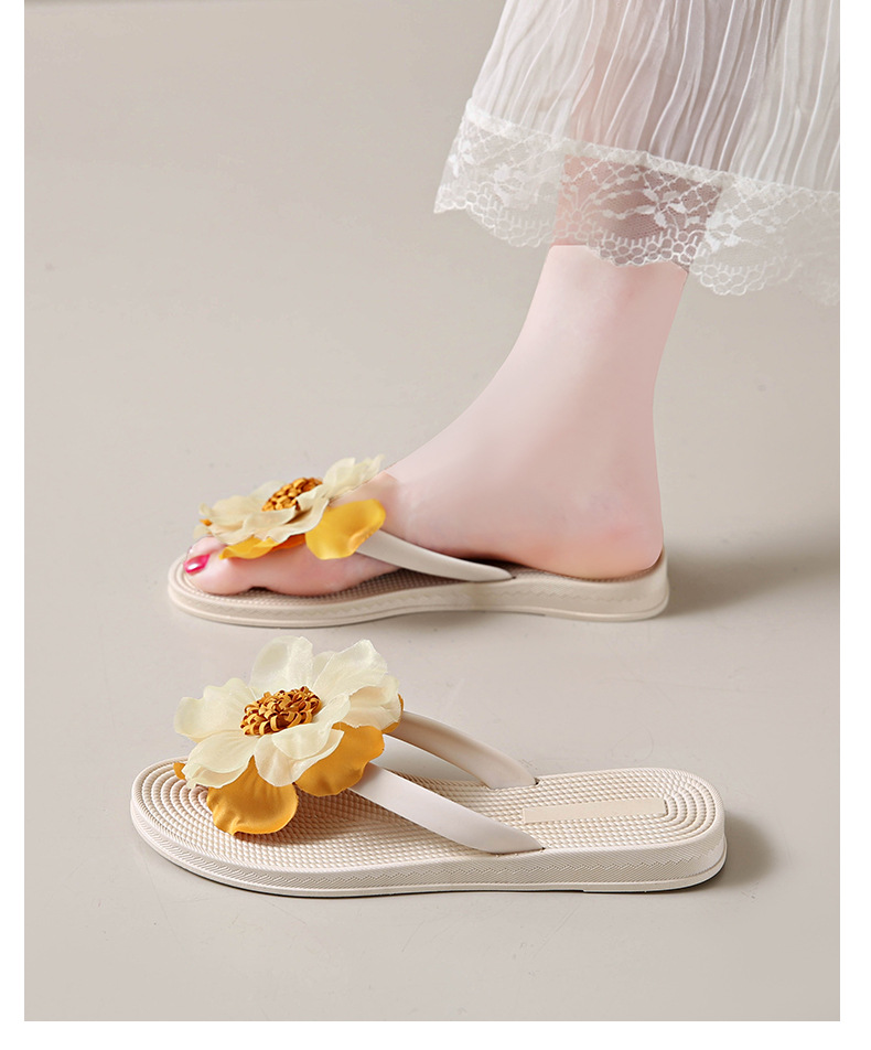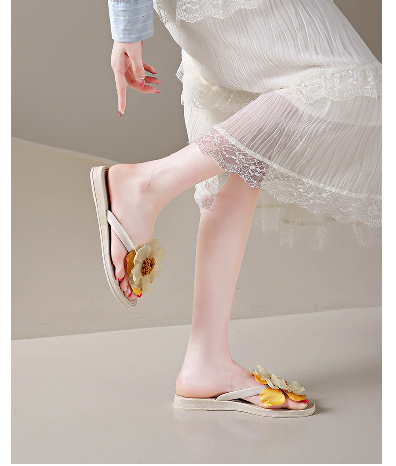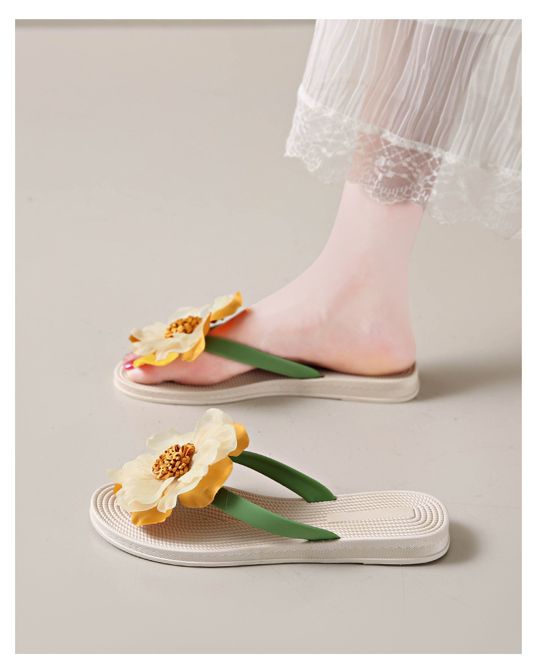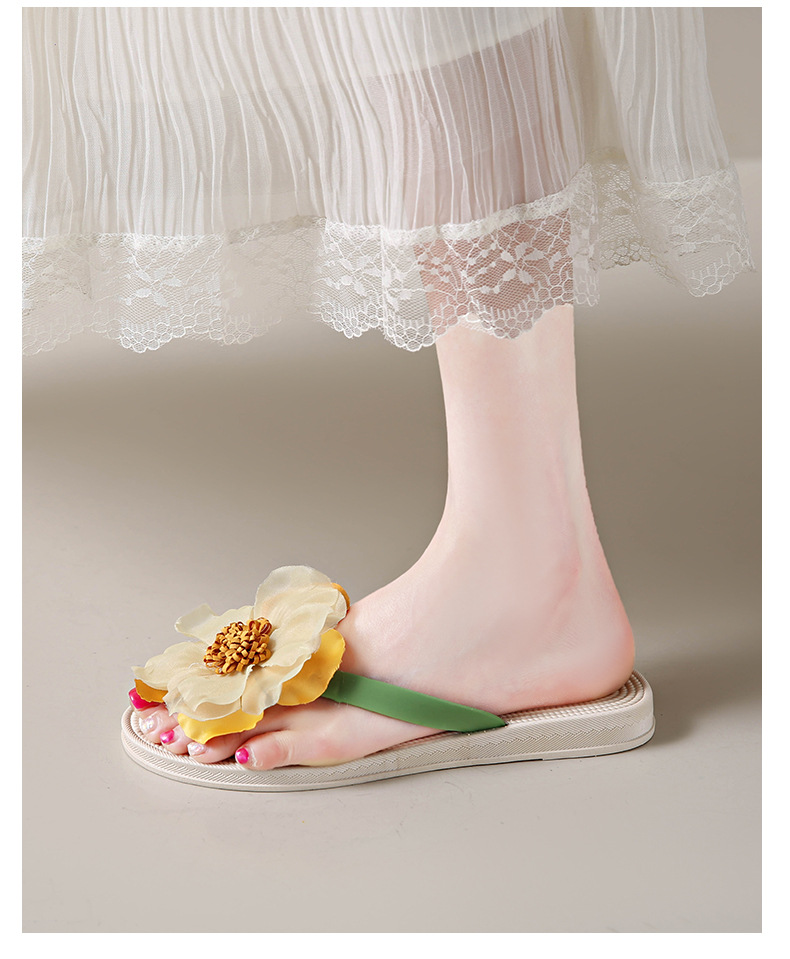 니치 페어리 스타일 플랫 힐 플립 플롭 여성 여름 패션 밀짚 꽃 플랫 목가적 인 홀리데이 비치 스플린트 슈즈스토어 가기