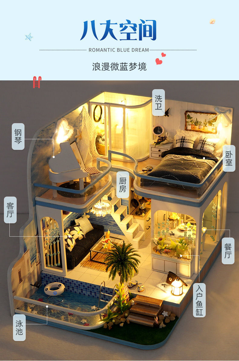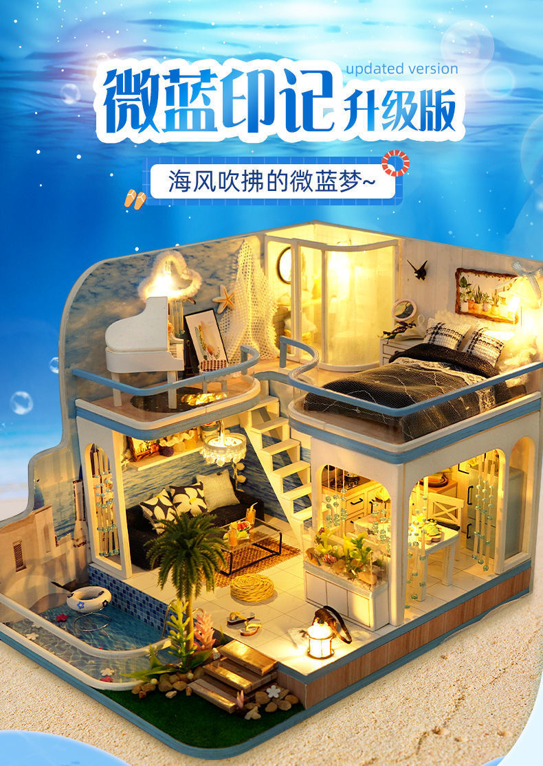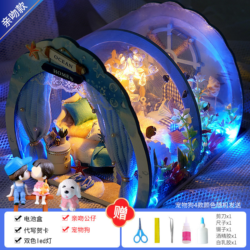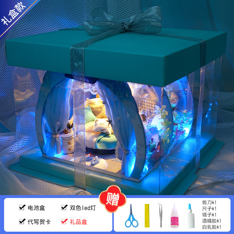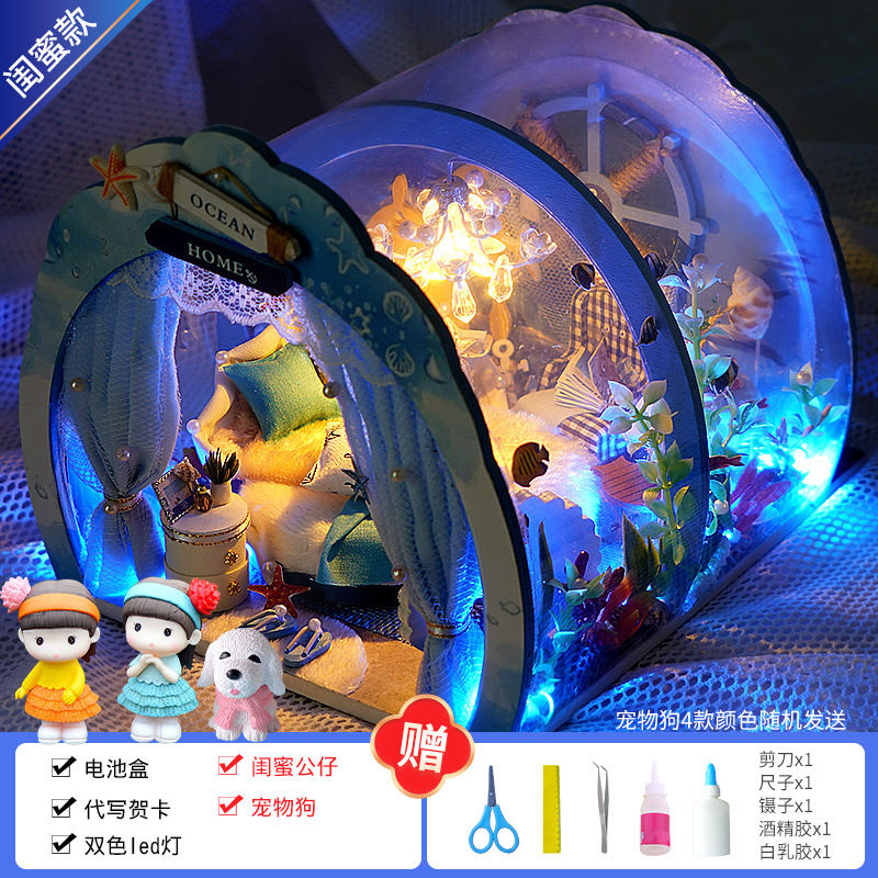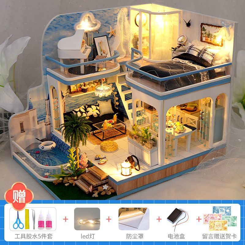 Diy 수제 오두막 조립 건물 모델 미니 작은 집 장난감 소녀와 소년을위한 생일 선물