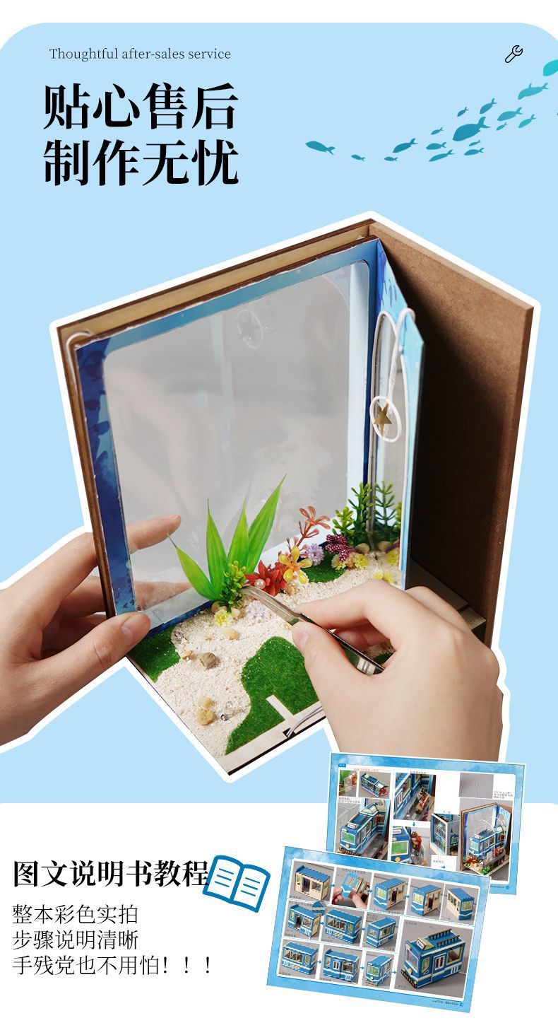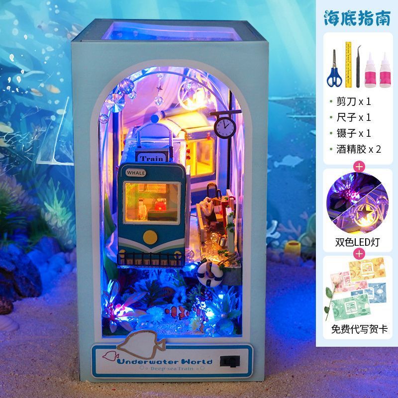 Diy 수제 오두막 조립 건물 모델 미니 작은 집 장난감 소녀와 소년을위한 생일 선물스토어 가기