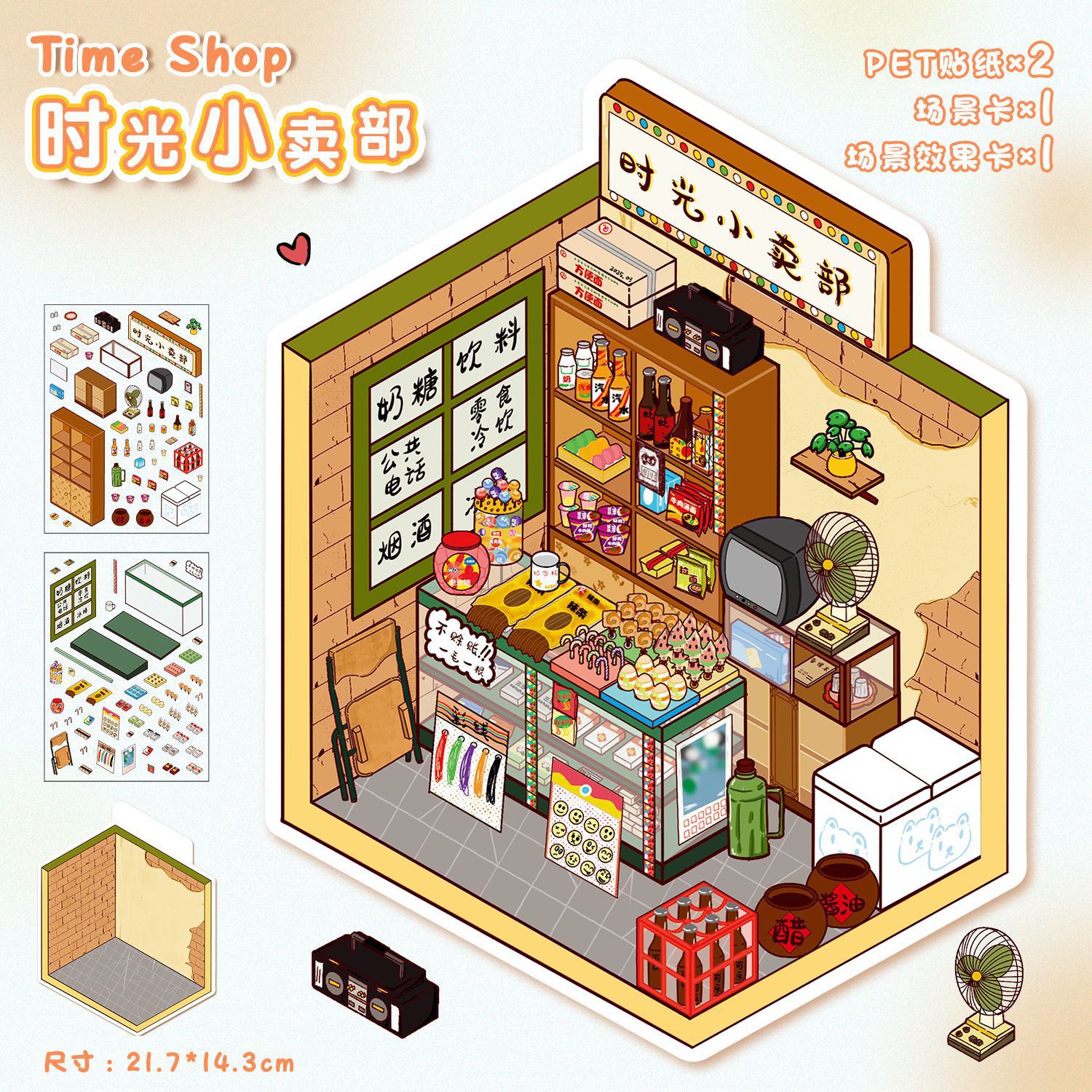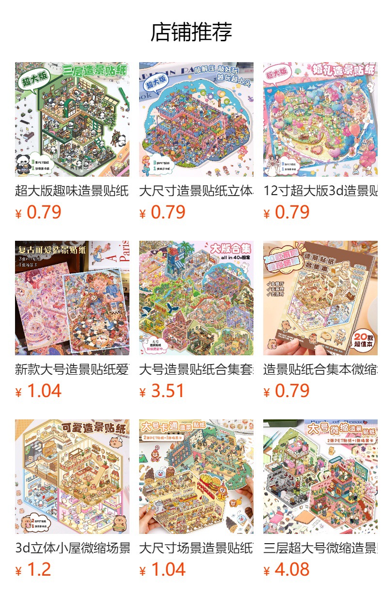 귀여운 3D 입체 오두막 풍경 스티커 방 코너 마이크로 월드 스티커 수제 DIY 스태킹 감압 스티커스토어 가기