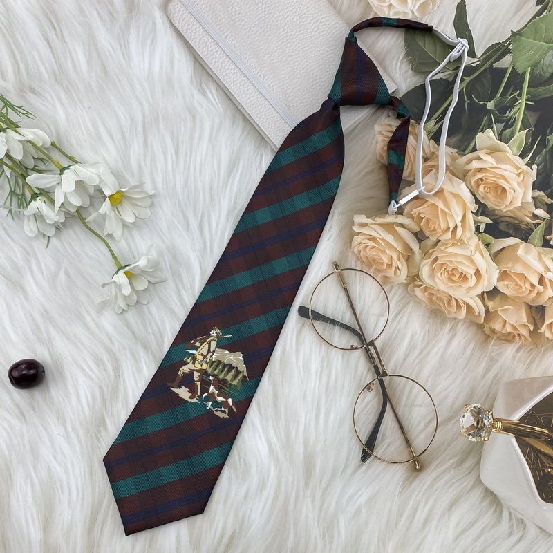 홈메이드 그린 크라운 타이 복고풍 프린트 만화 무료 격자 무늬 스트라이프 영국 패션 트렌드 빈티지