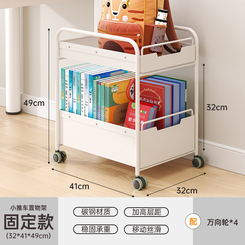 책가방과 책을 위한 책상 아래 이동식 수납선반, 어린이 간식과 장난감을 위한 바닥선반, 유모차, 테이블 옆 수납선반스토어 가기
