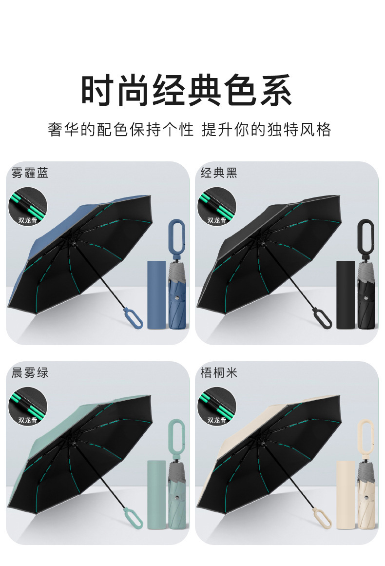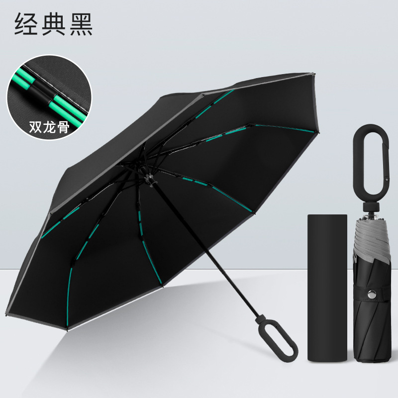 8단 접이식 우산, 남녀공용, 비와 햇빛 모두에 적합, 블랙코팅 자외선 차단 우산