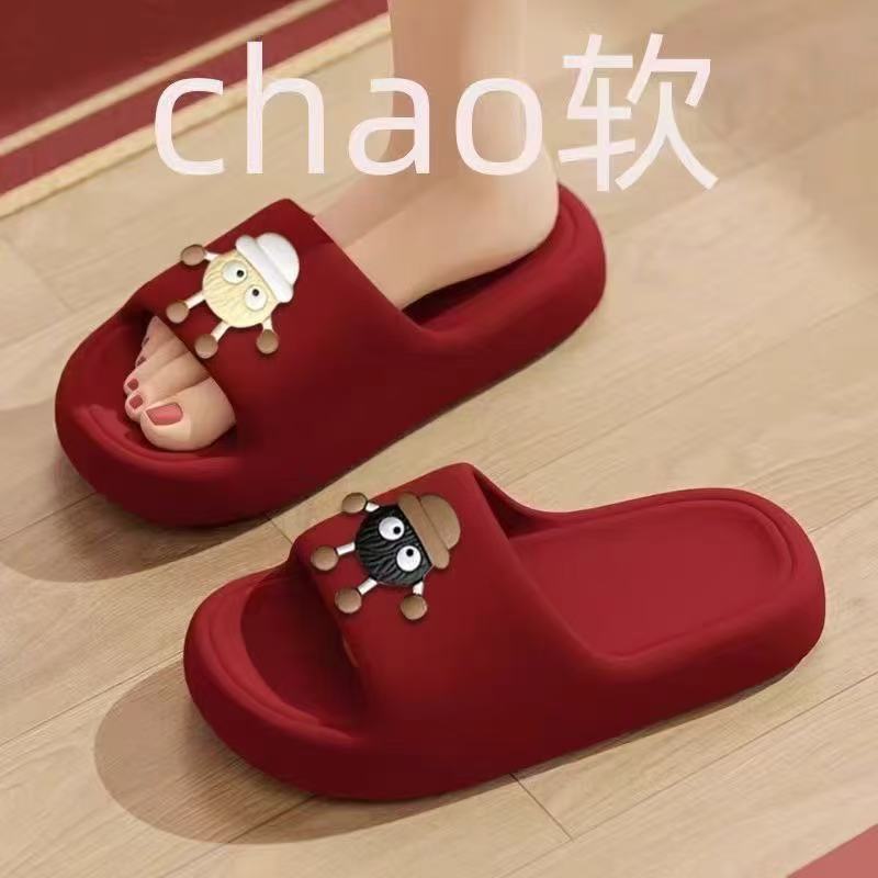 여름 아우터용 여성용 레드 축제 고급 두꺼운 밑창 에바 웨딩 샌들, 가벼운 인 결혼식 실내 슬리퍼