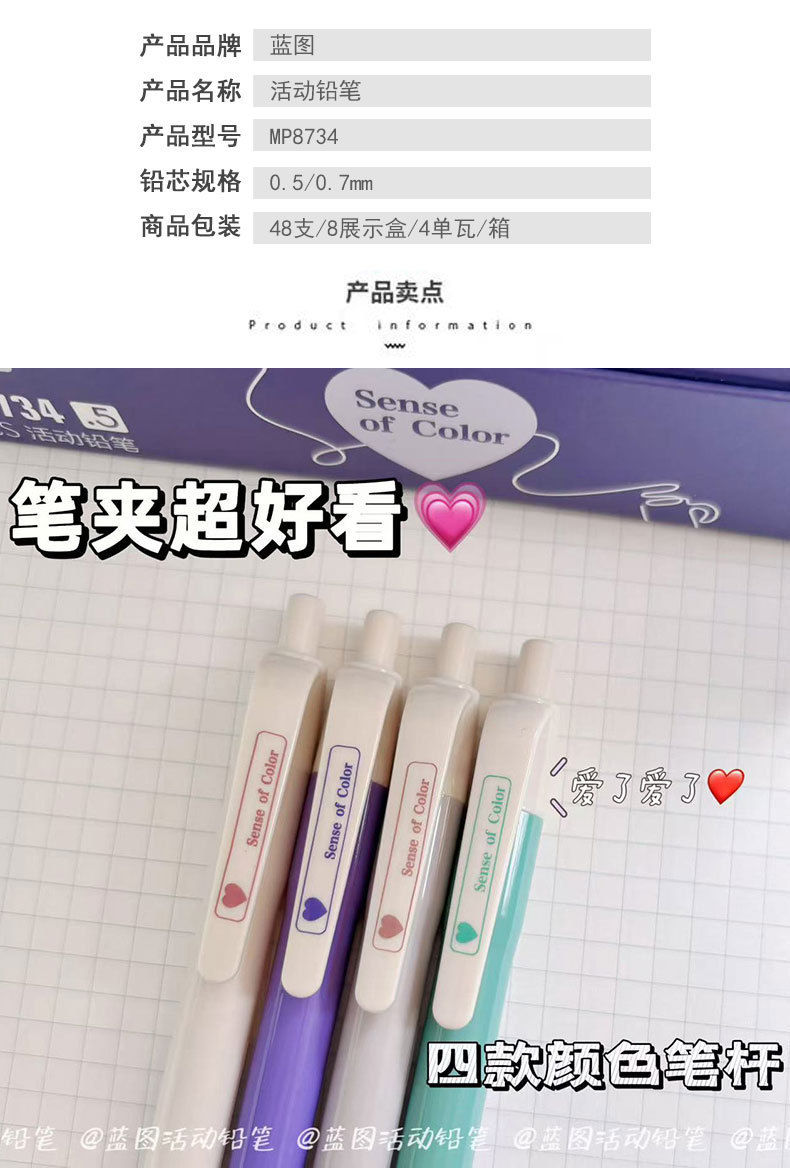 신형 자동연필 0.7 초등학생 심이 부러지기 쉬운 심이 없는 심플한 컬러봉연필 0.5 샤프펜슬 크로스보더스토어 가기