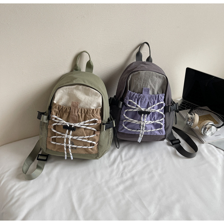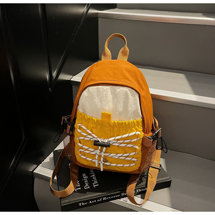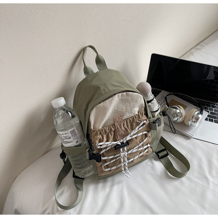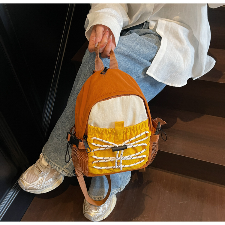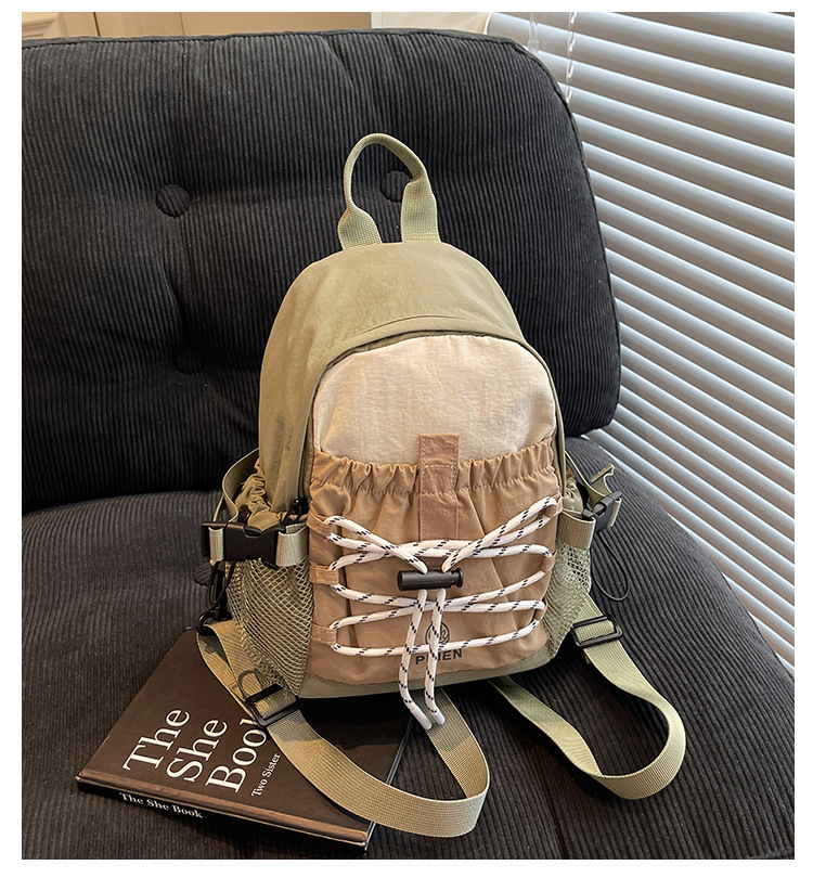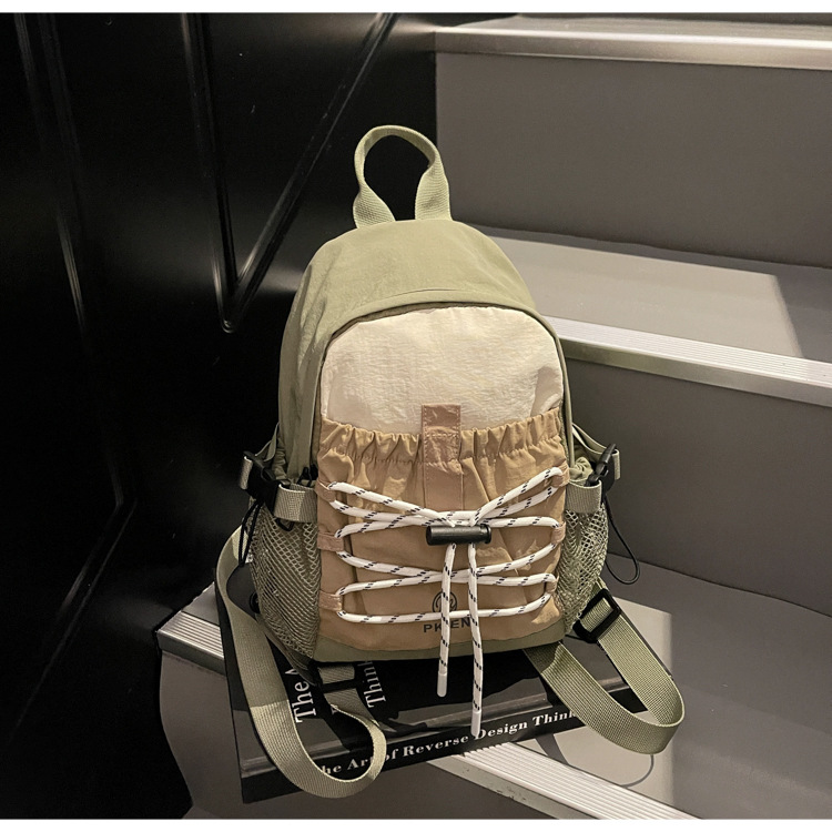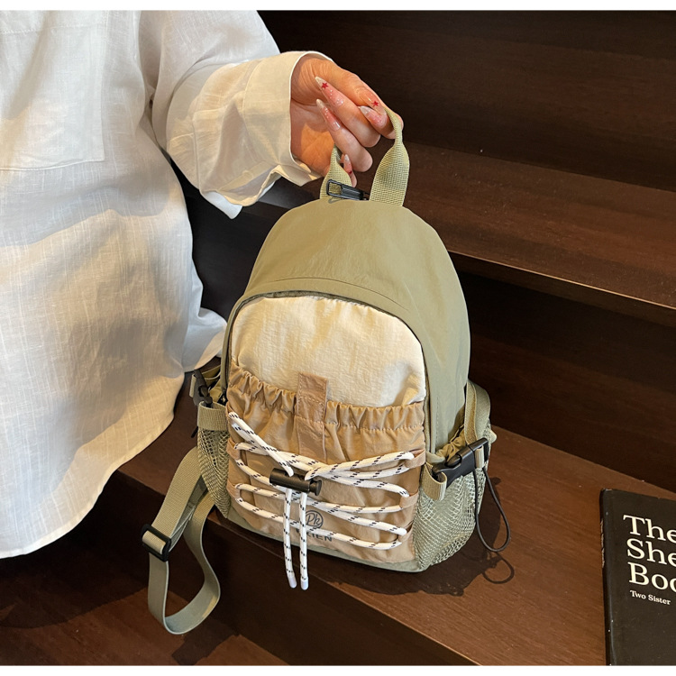 새로운 복고풍 색상 매칭 소형 배낭 미니 학교 가방 디자인 스포츠 경량 야외 졸라매는 끈 등산 소형 배낭스토어 가기