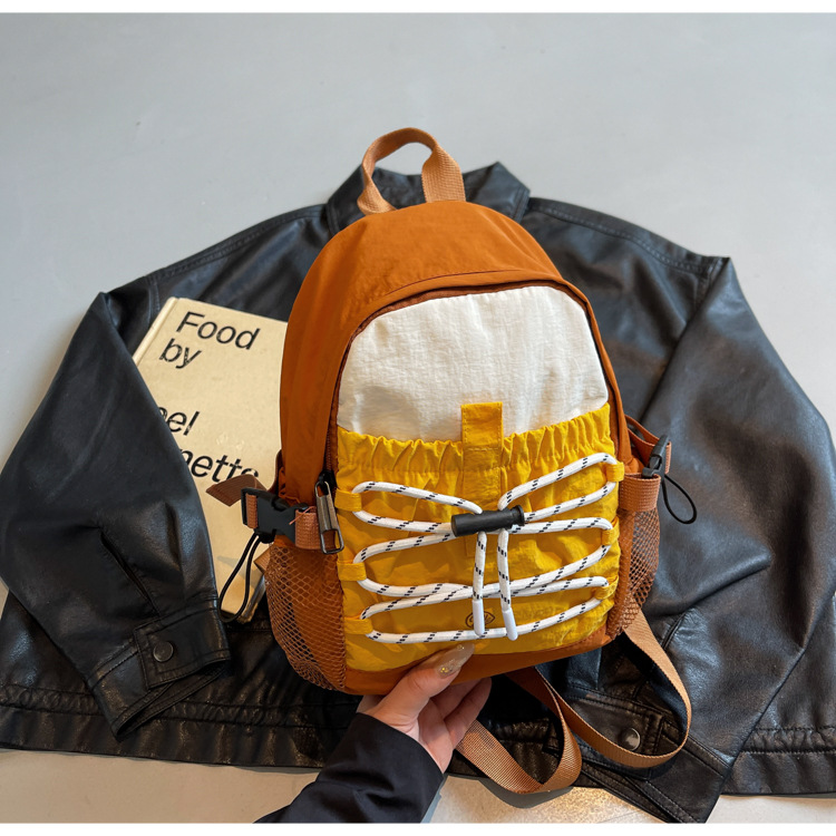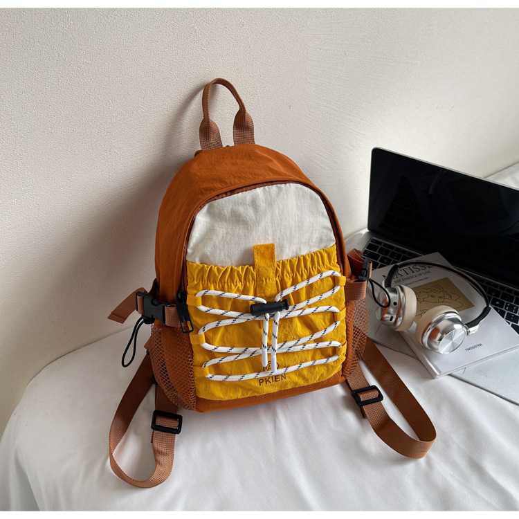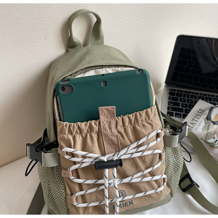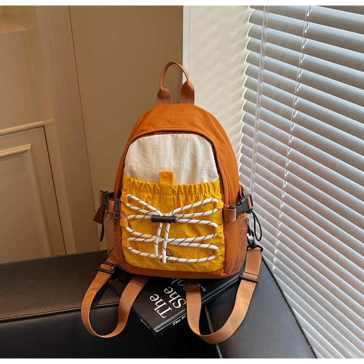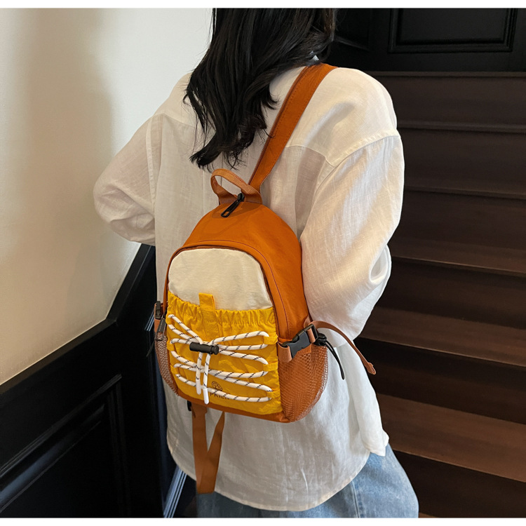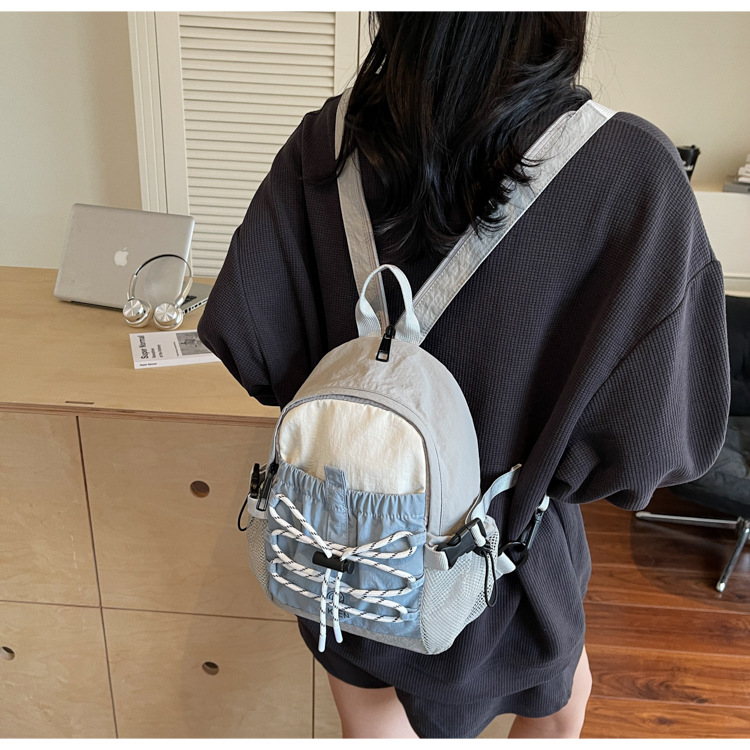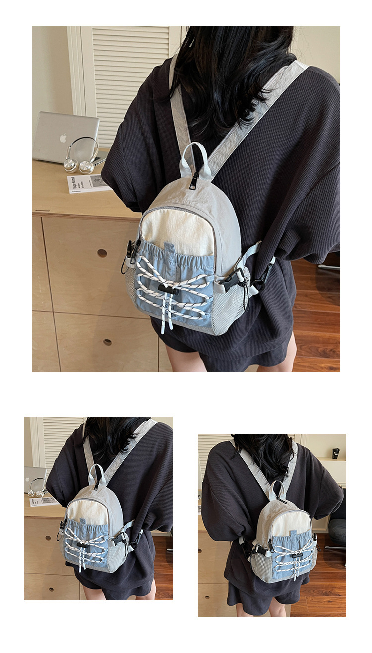 새로운 복고풍 색상 매칭 소형 배낭 미니 학교 가방 디자인 스포츠 경량 야외 졸라매는 끈 등산 소형 배낭스토어 가기