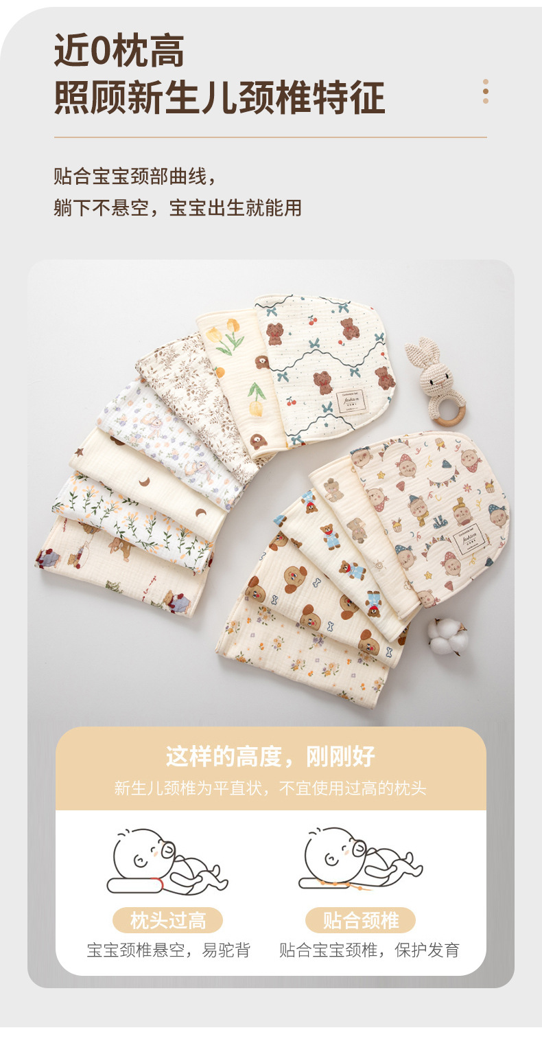 구름 모양 베개 8겹 거즈 아기 베개 여름용 땀 흡수 통기성 평면 베개 어깨 패드 구토 방지 베개스토어 가기