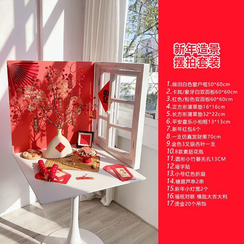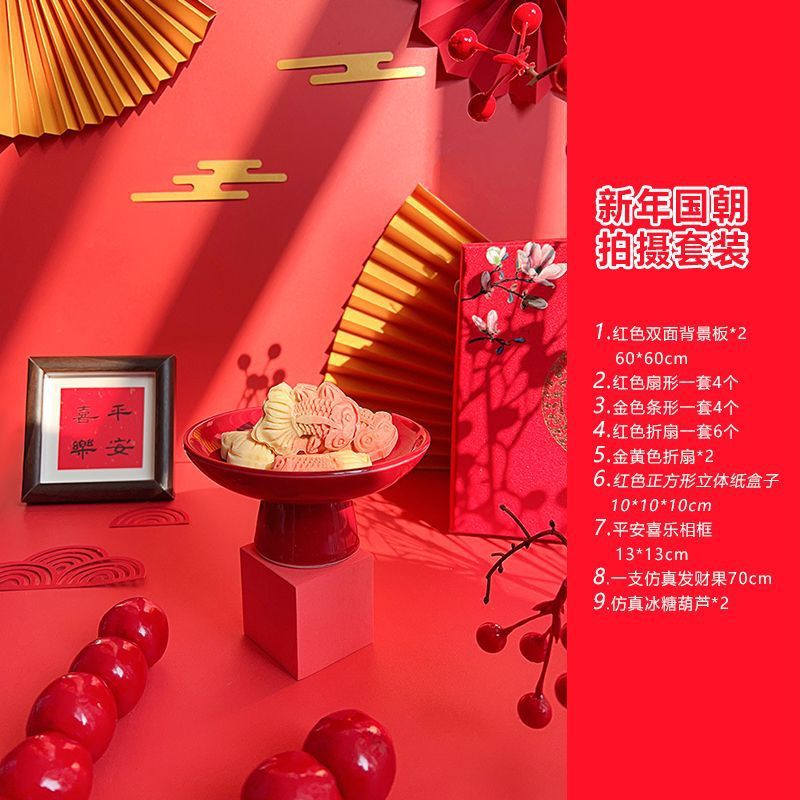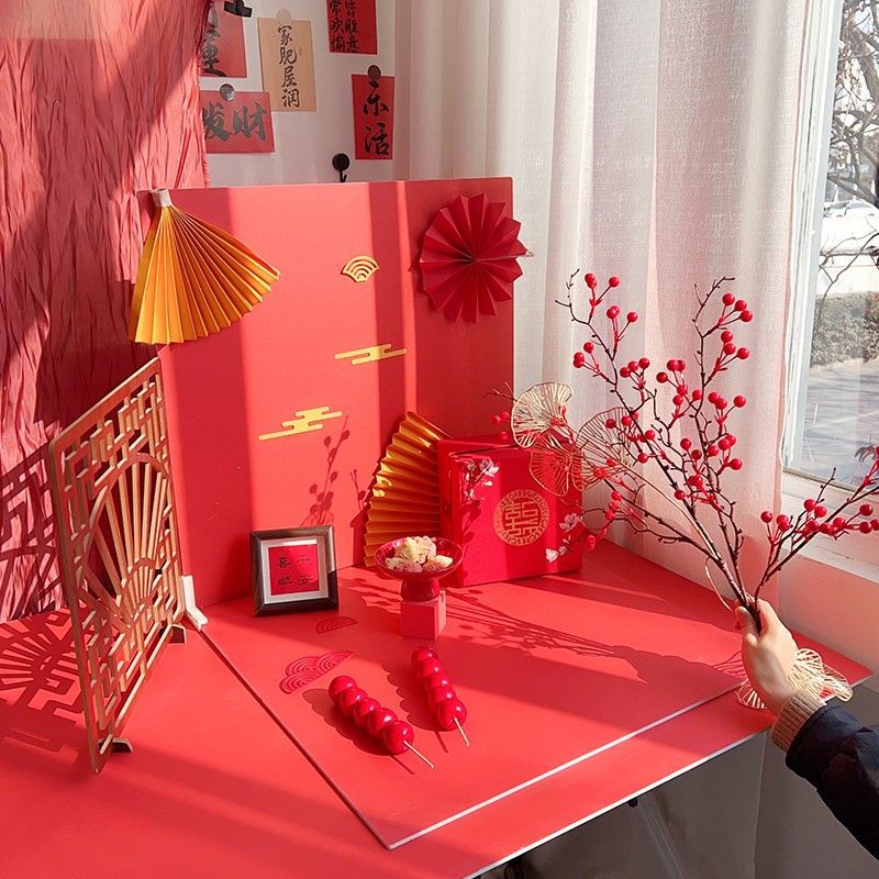 중국 스타일 빨간색 사진 배경 보드 Gourmet Valley 아름다운 새해 고대 스타일 장면 촬영 소품 직접 판매 세트