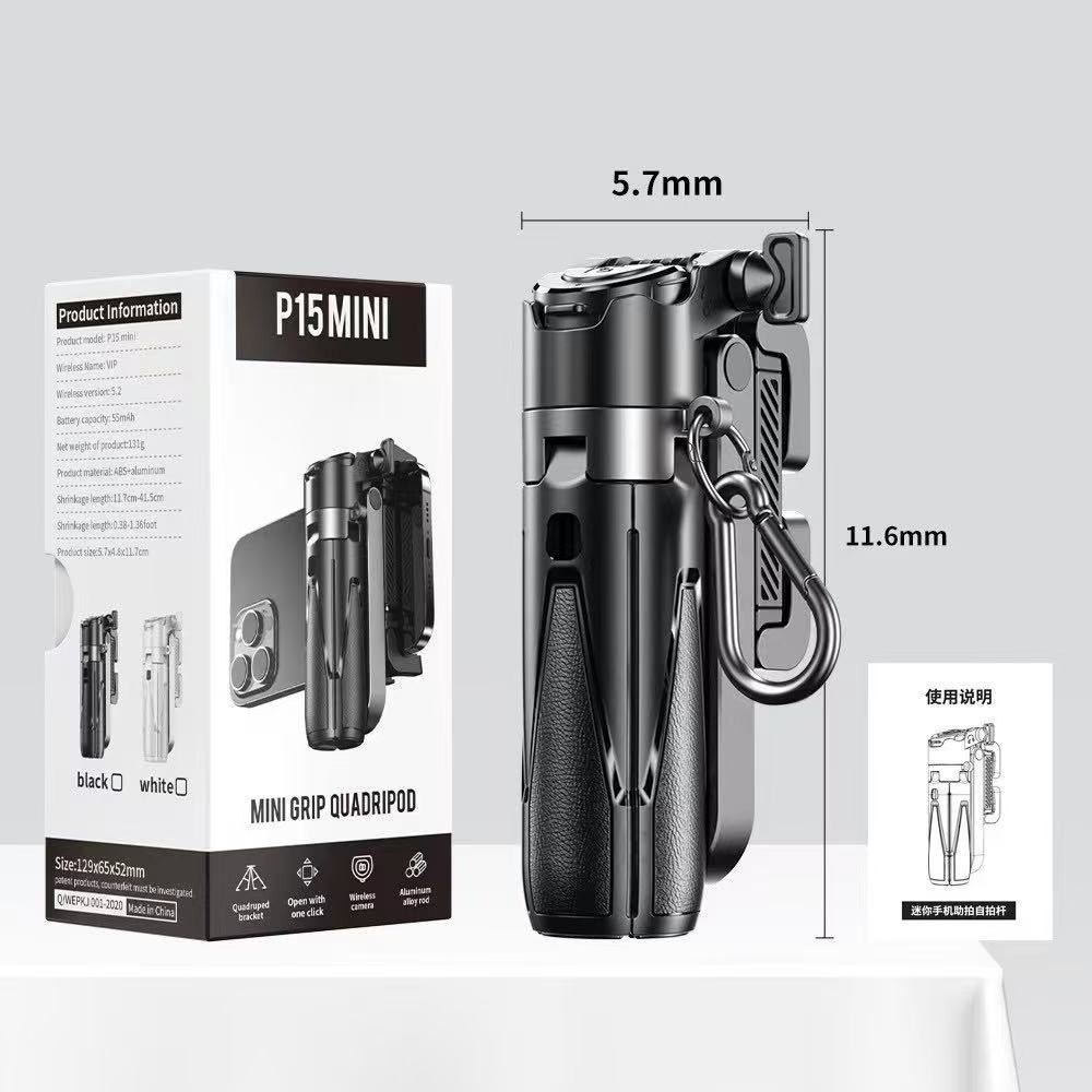 P15mini 휴대용 블루투스 셀카봉, 여행용 휴대용 사진 촬영, 트라이앵글 스탠드, 접이식 휴대폰 홀더