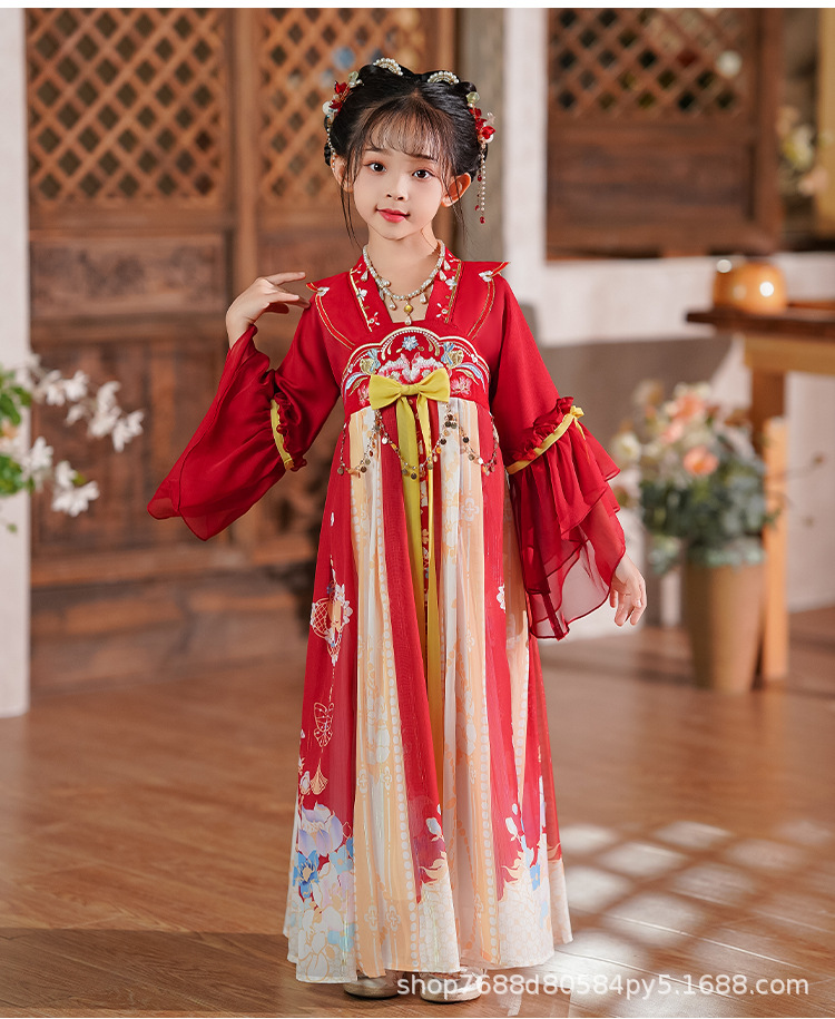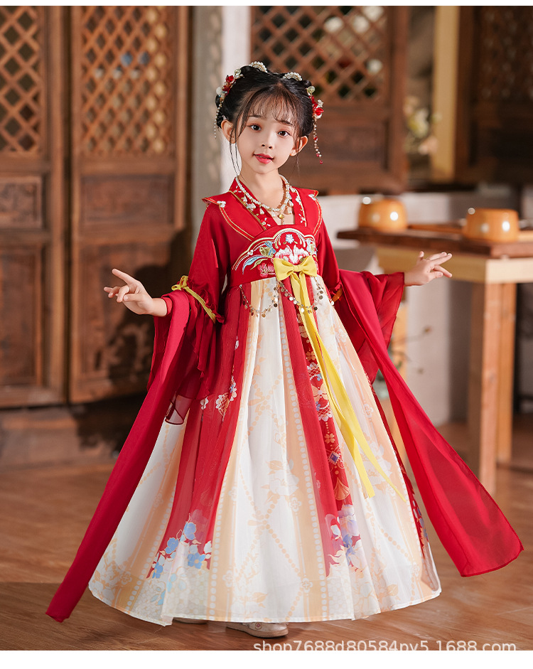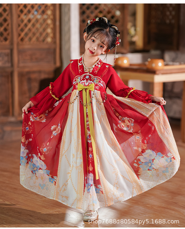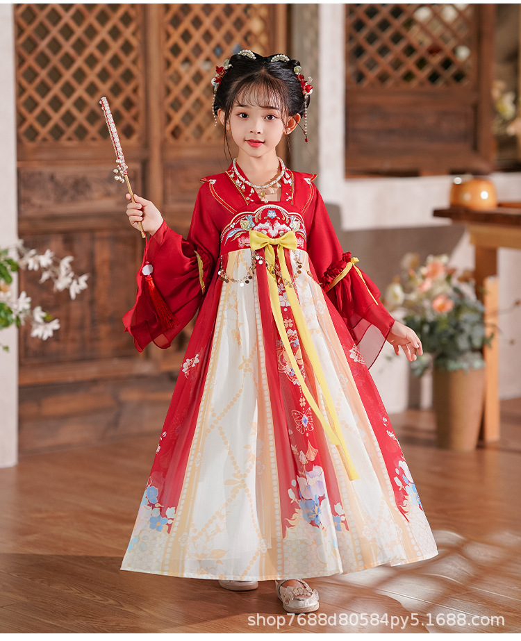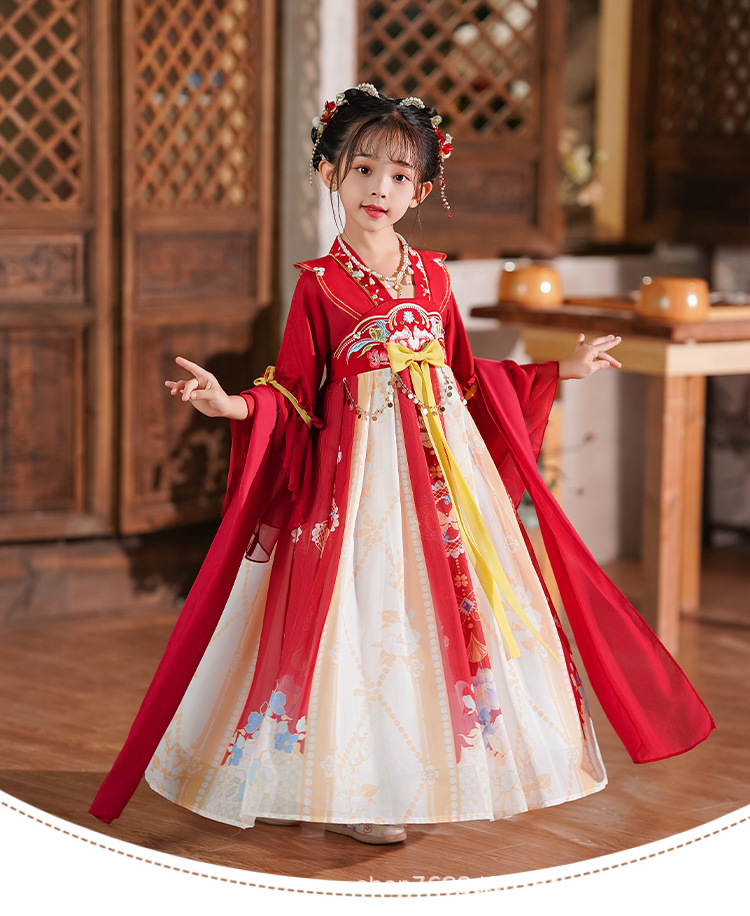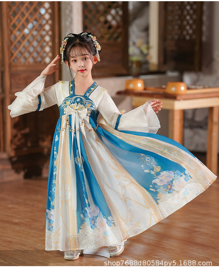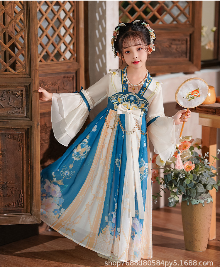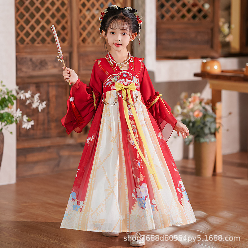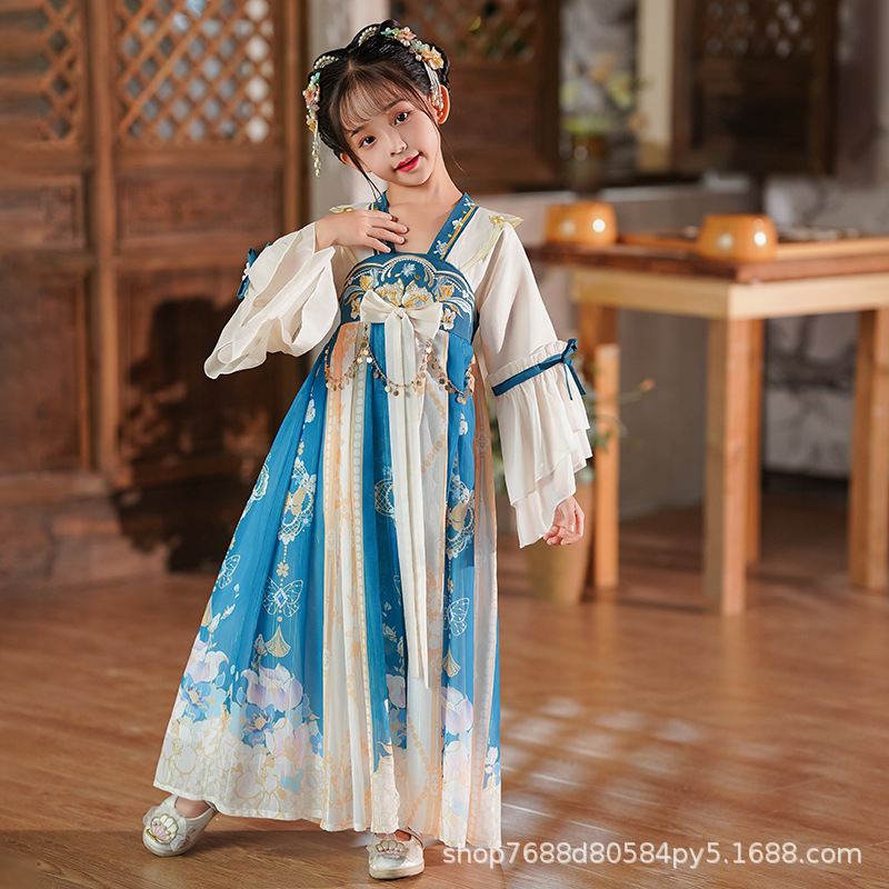 Hanfu Girls 2025 새로운 여름 고대 의상 슈퍼 요정 스타일 어린이 여름 고대 스타일 어린 소녀 공주 드레스 여름 드레스