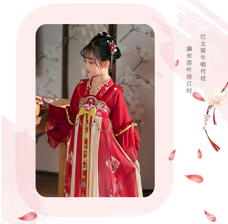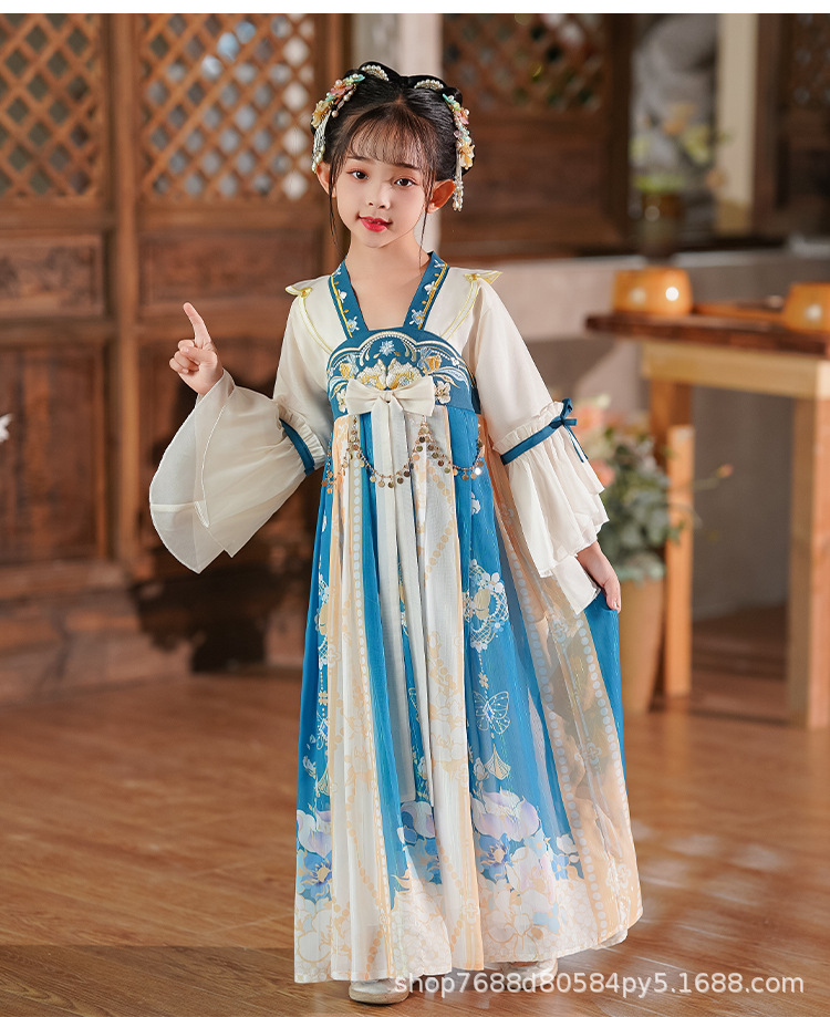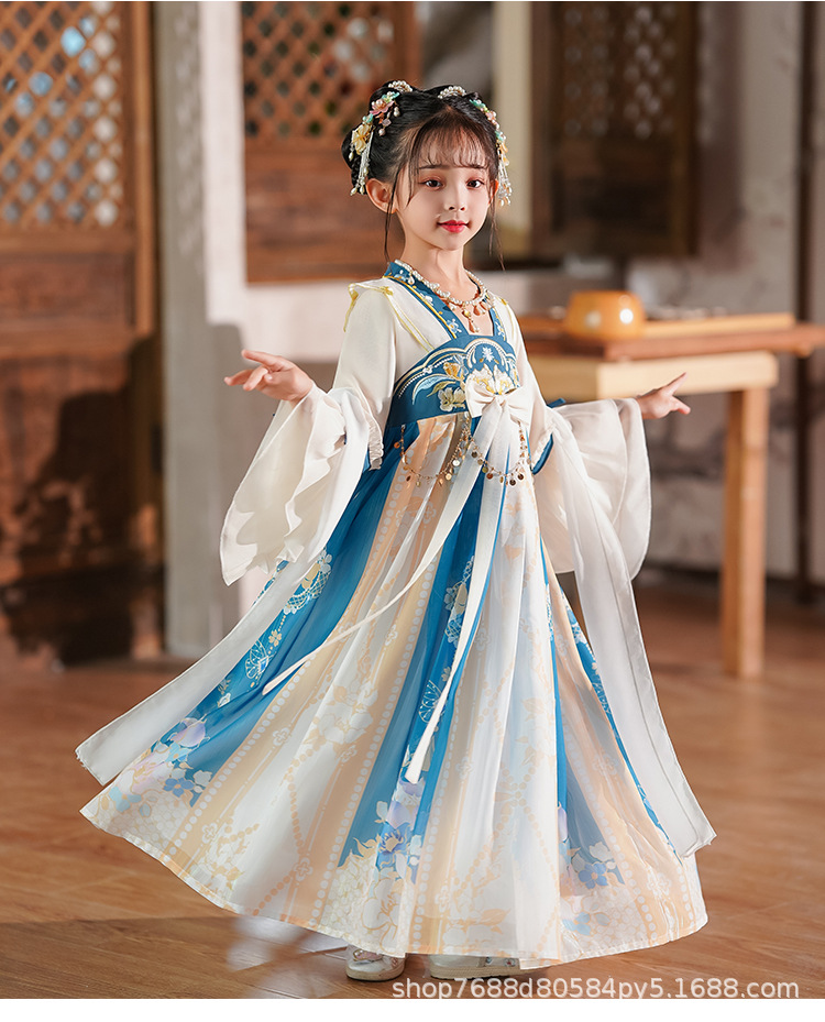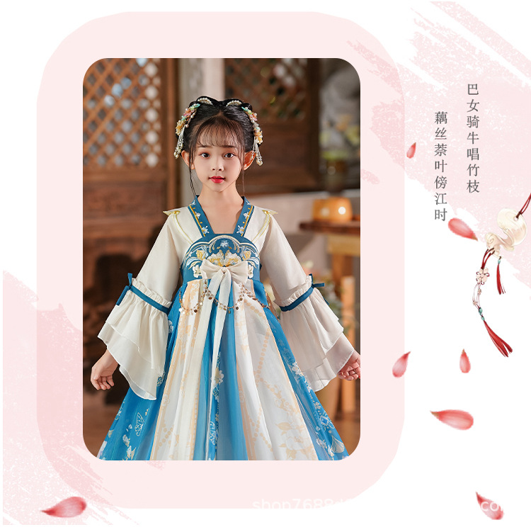 Hanfu Girls 2025 새로운 여름 고대 의상 슈퍼 요정 스타일 어린이 여름 고대 스타일 어린 소녀 공주 드레스 여름 드레스스토어 가기