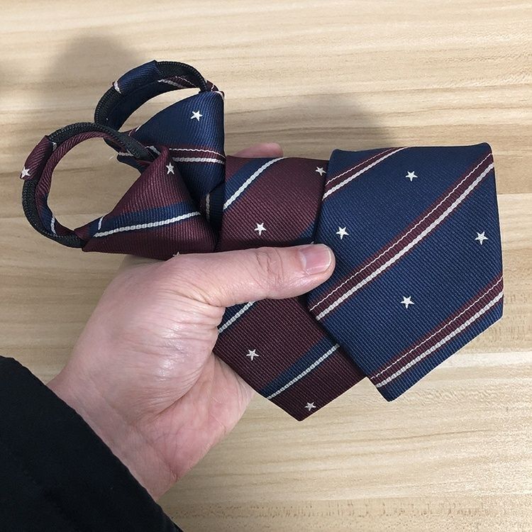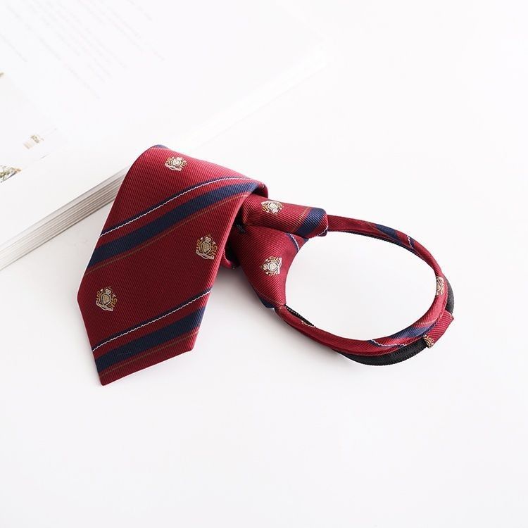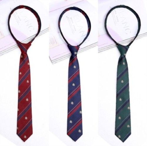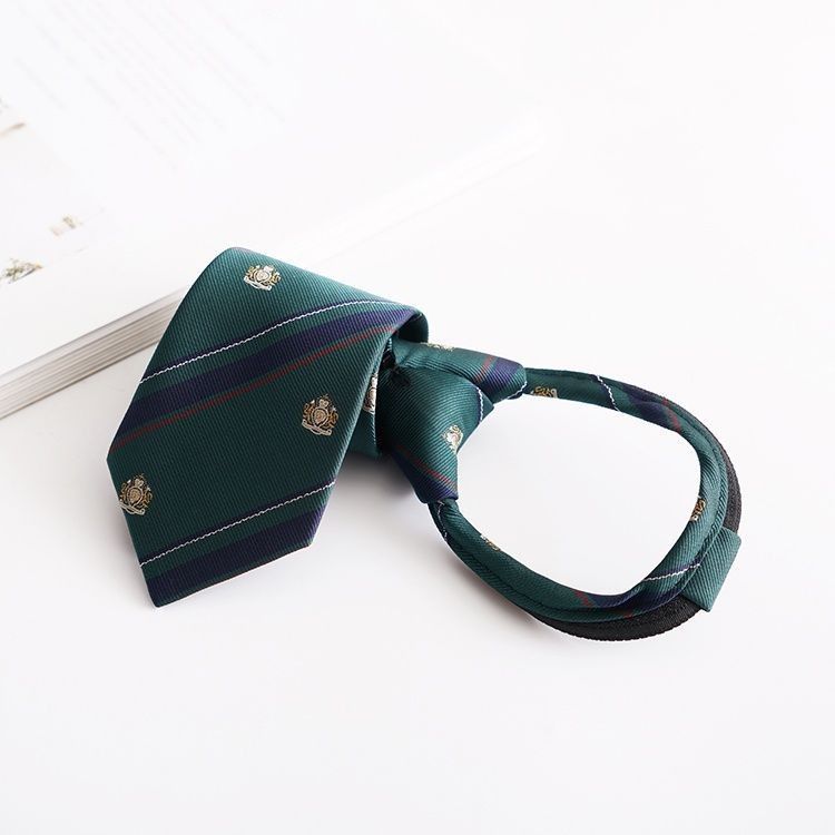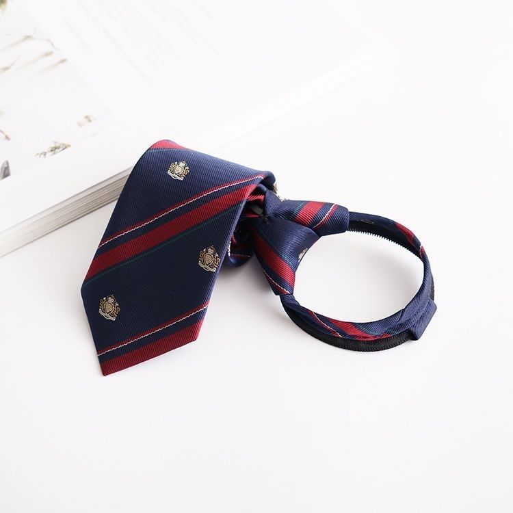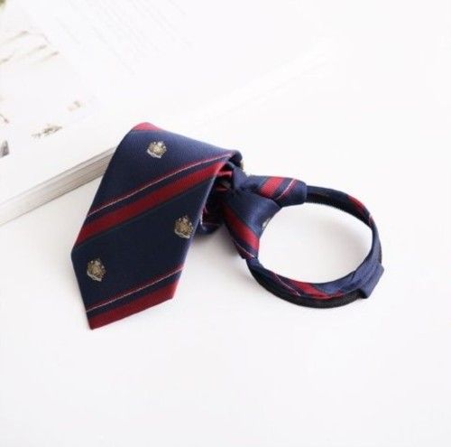 학생 넥타이가 없는 지퍼 스타일 엠블럼 손잡이 자수 넥타이 청소년 넥타이 남성 대학