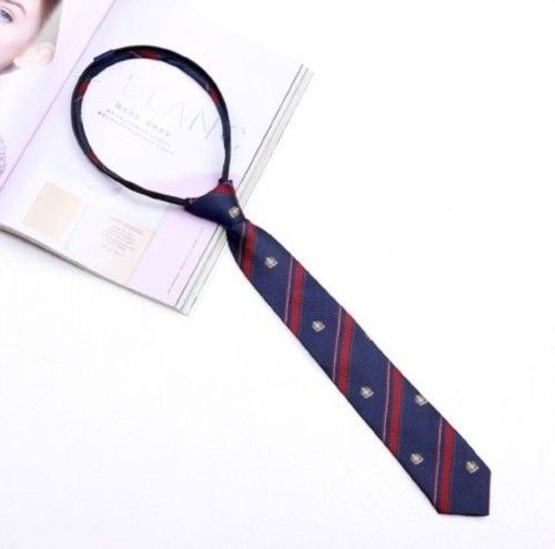 학생 넥타이가 없는 지퍼 스타일 엠블럼 손잡이 자수 넥타이 청소년 넥타이 남성 대학스토어 가기