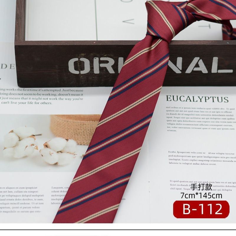 JK 넥타이 여성 한국식 일본식 학생복 대학 스타일 버건디 스트라이프 7CM 핸드메이드 지퍼 매듭 없음스토어 가기