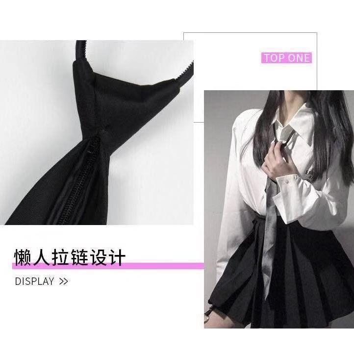 한국식 학생 대학 스타일 일본식 격자 무늬 넥타이 JK 유니폼 게으른 넥타이 블랙 유니섹스 넥타이 없음