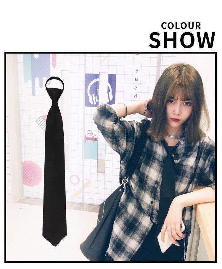 한국식 학생 대학 스타일 일본식 격자 무늬 넥타이 JK 유니폼 게으른 넥타이 블랙 유니섹스 넥타이 없음스토어 가기