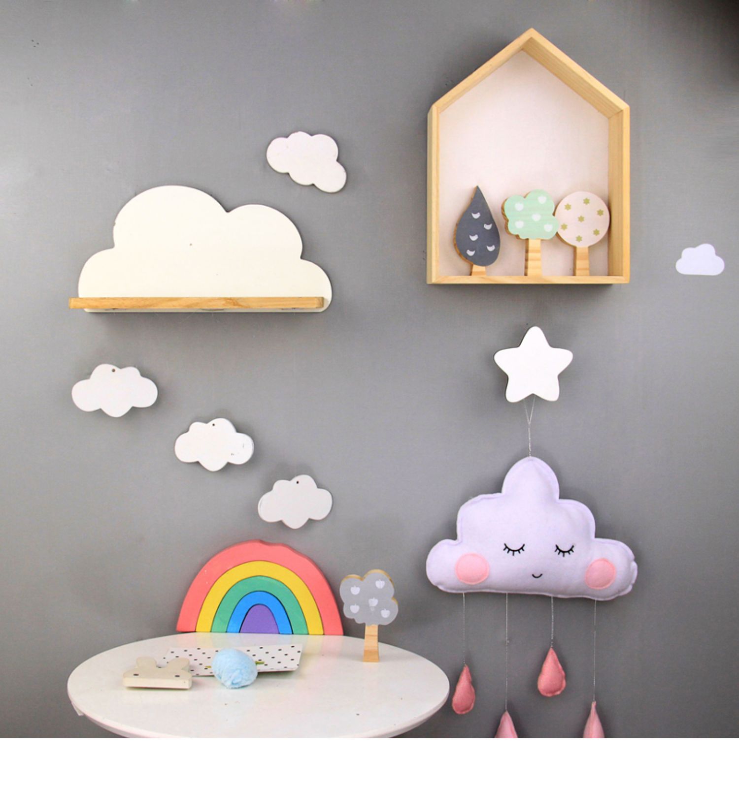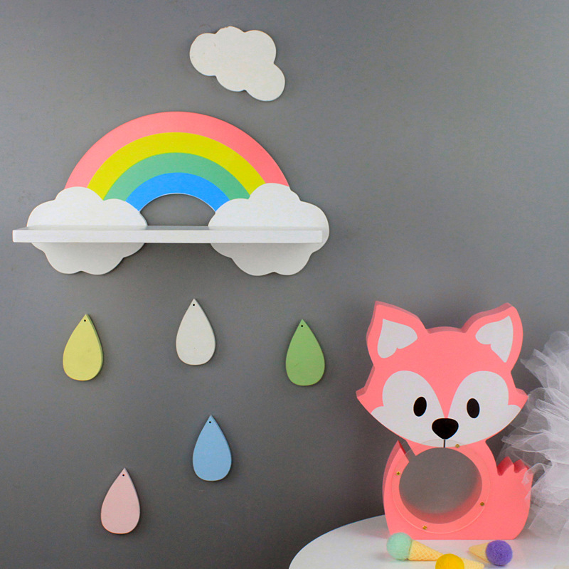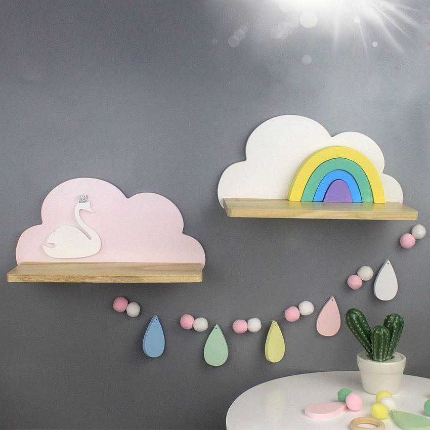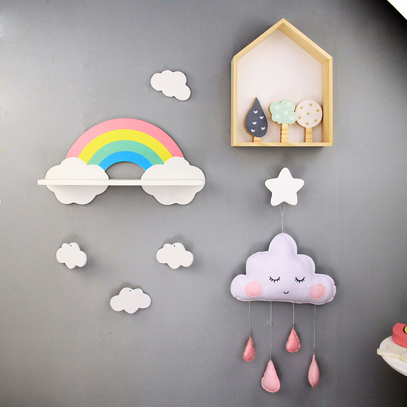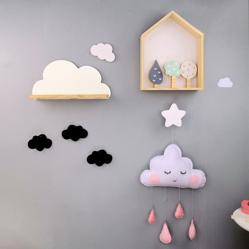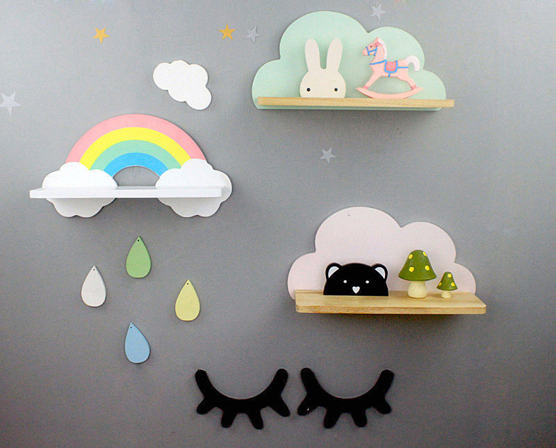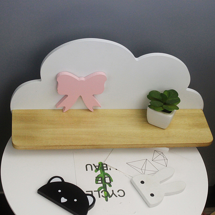 북유럽 구름 선반 보관함 단단한 나무 펀치없는 책장 어린이 방 벽 장식 선반 Shi Hua