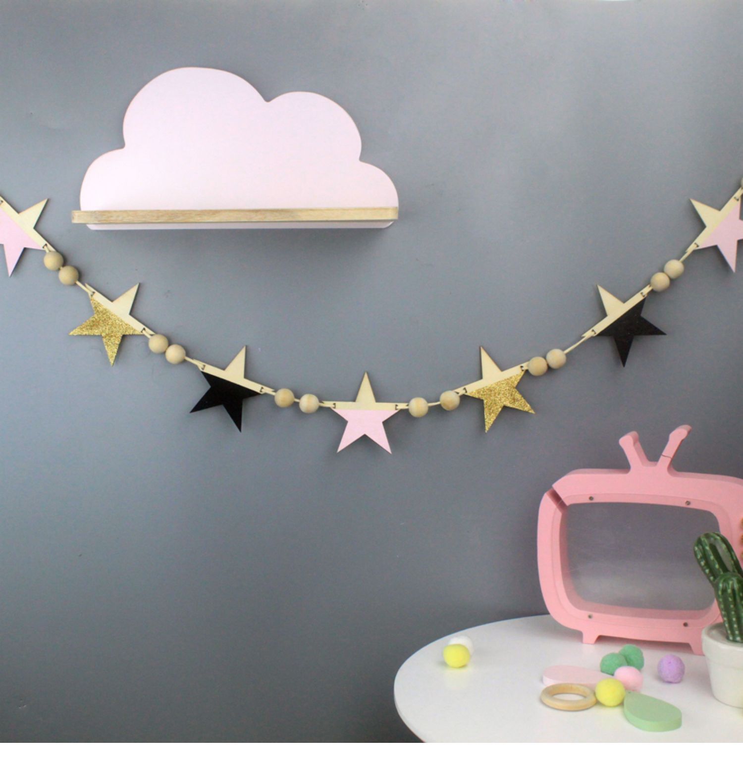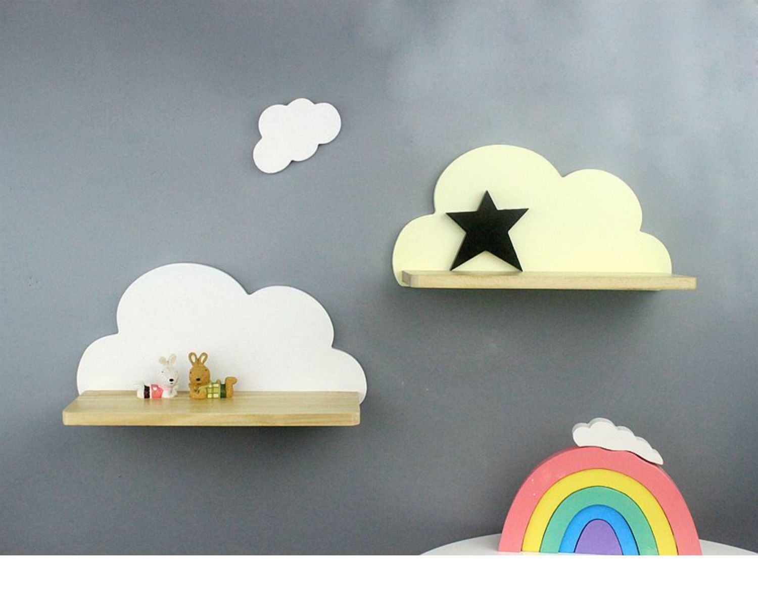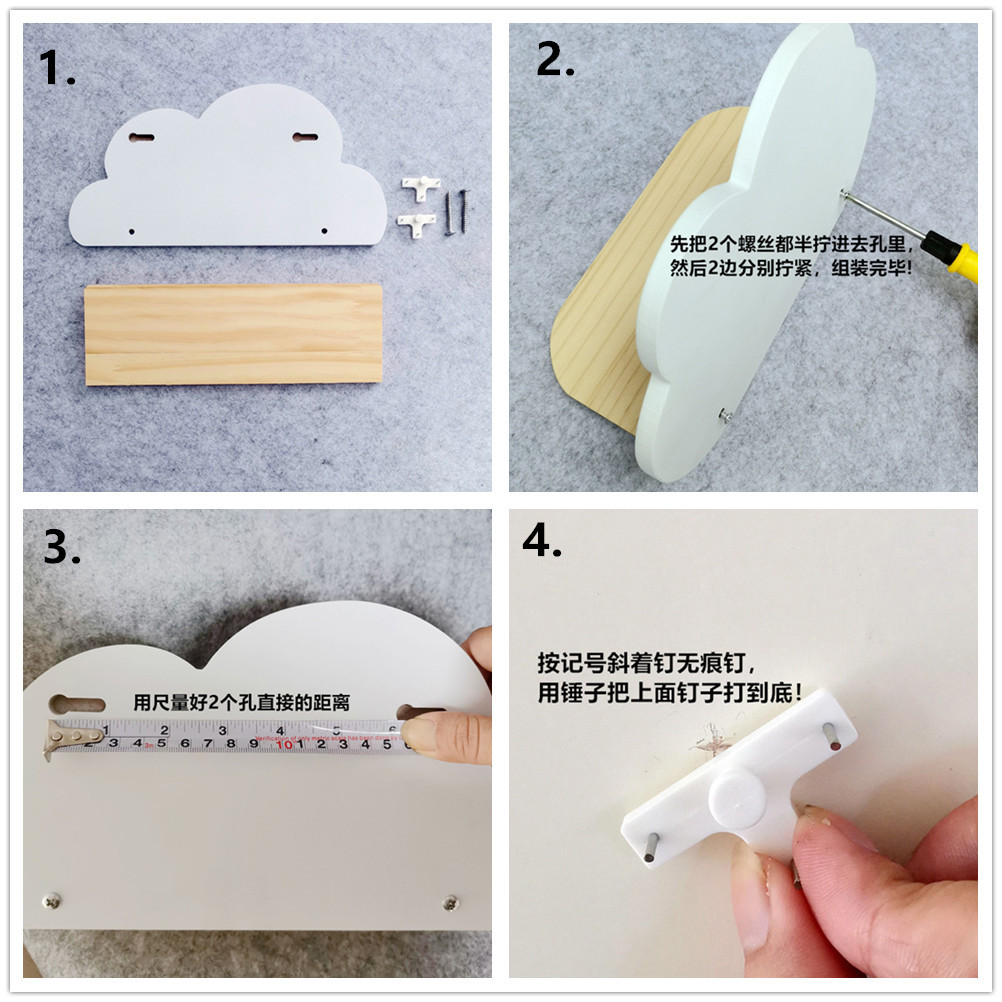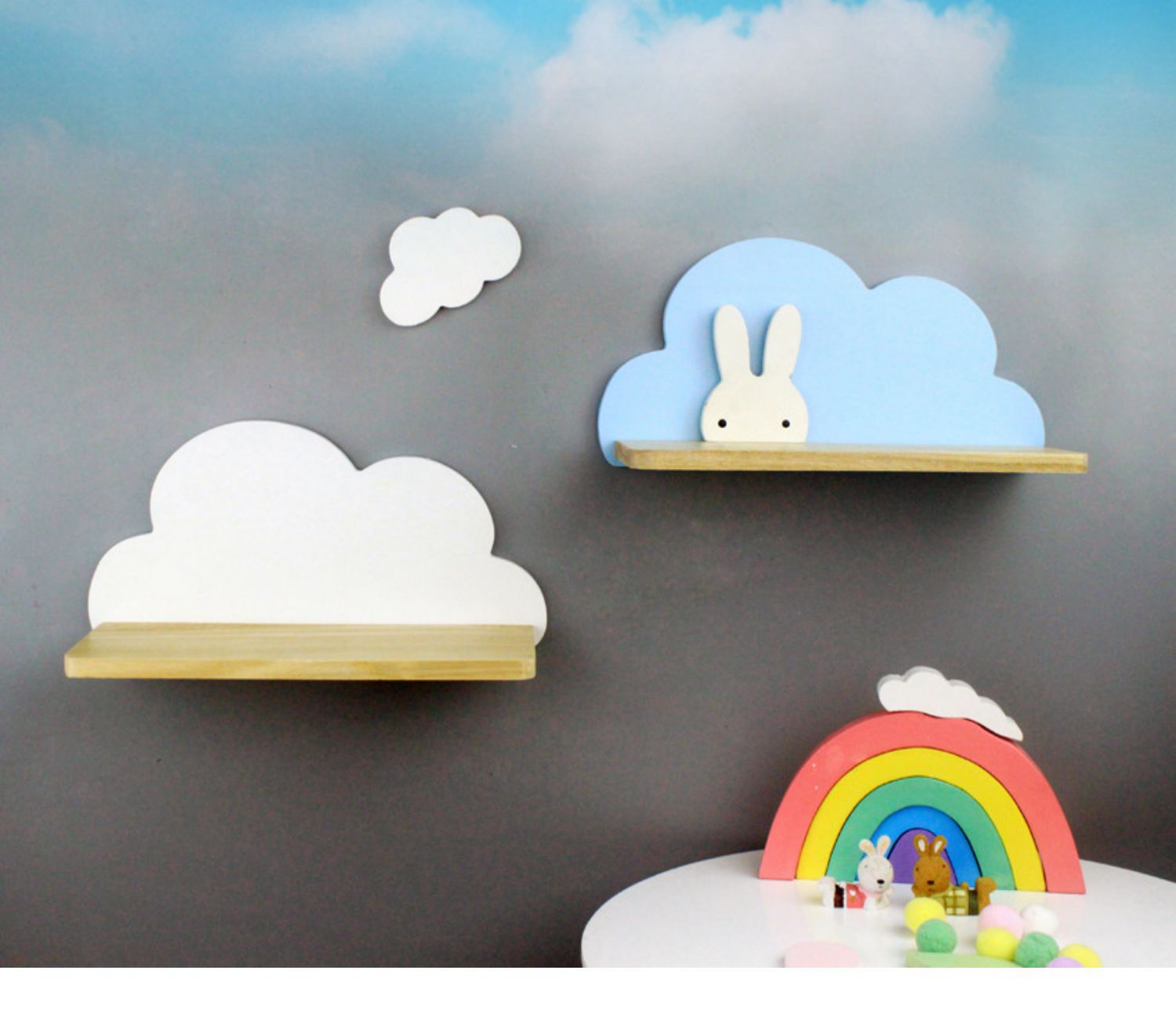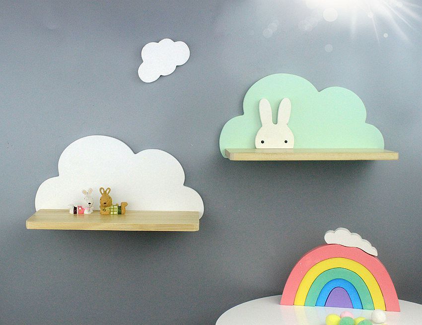 북유럽 구름 선반 보관함 단단한 나무 펀치없는 책장 어린이 방 벽 장식 선반 Shi Hua스토어 가기