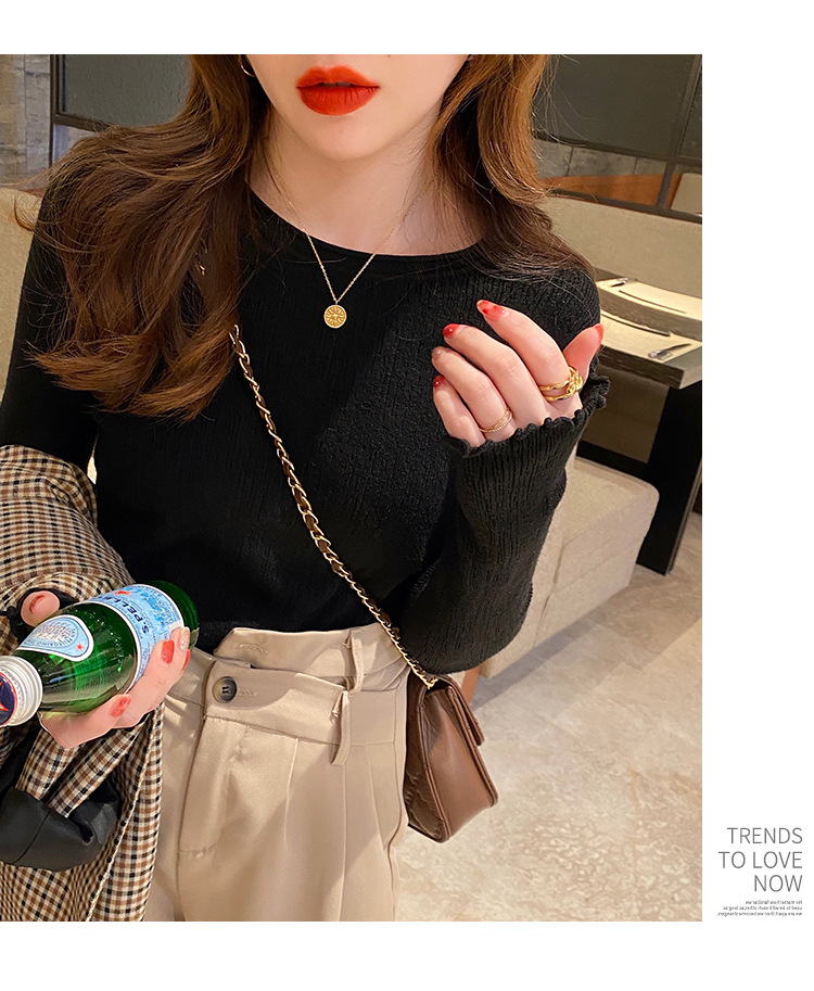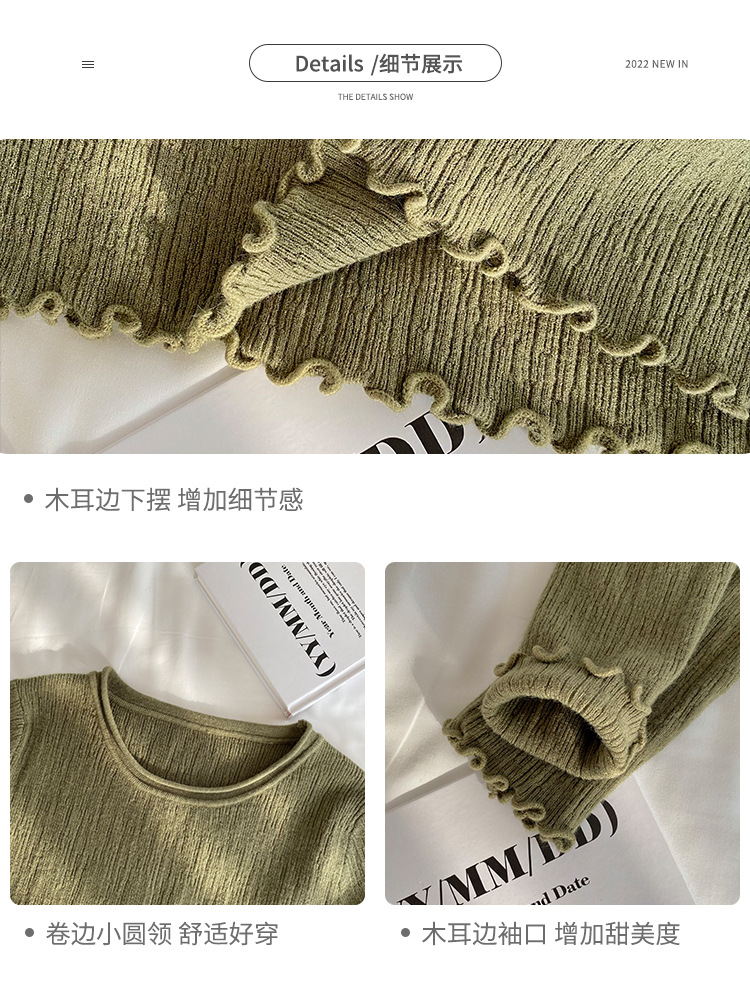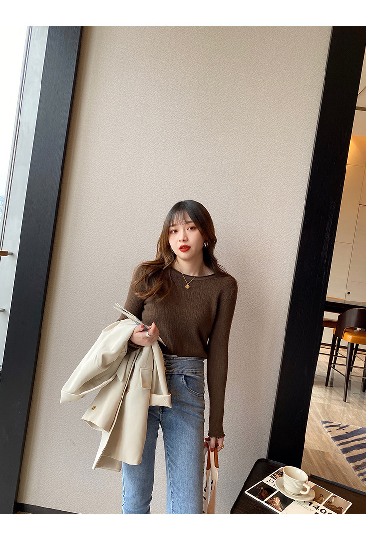 白色针织打底衫女春秋洋气内搭修身毛衣设计感小众木耳边长袖上衣