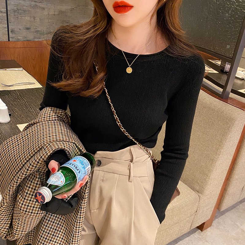 봄, 가을 여성용 화이트 니트 밑단 셔츠, 슬림핏 스웨터 디자인, 니치 나무 귓불 긴팔 상의스토어 가기