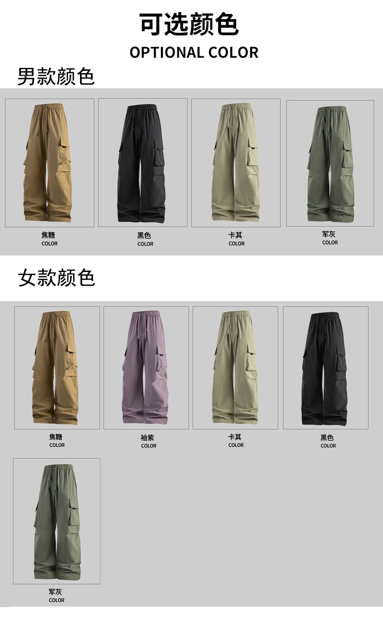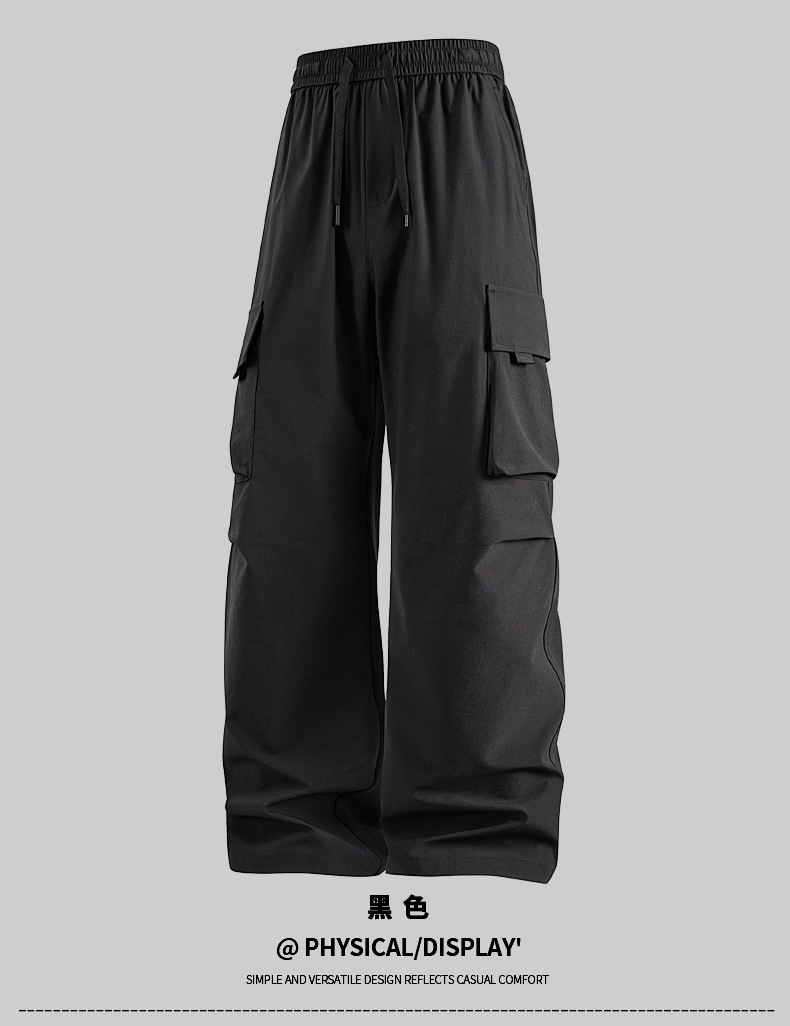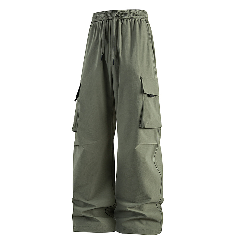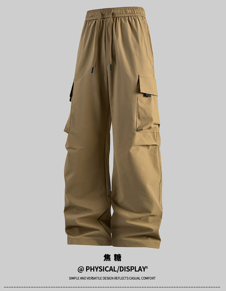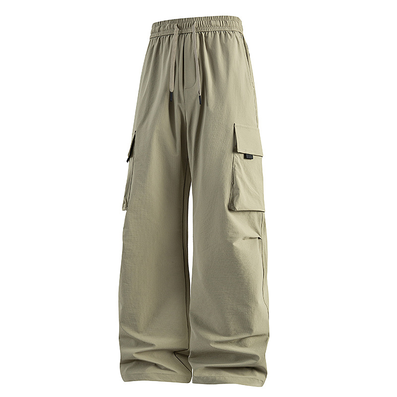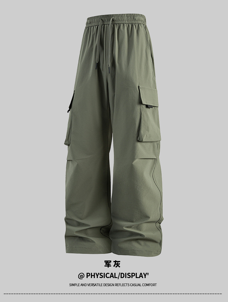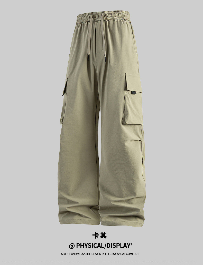 남성용 여름 얼음 느낌의 속건성 작업복, 통기성, 방수성, 루즈하고 드레이피한 야외용 경량 멀티 포켓 여성용 와이드 레그 팬츠