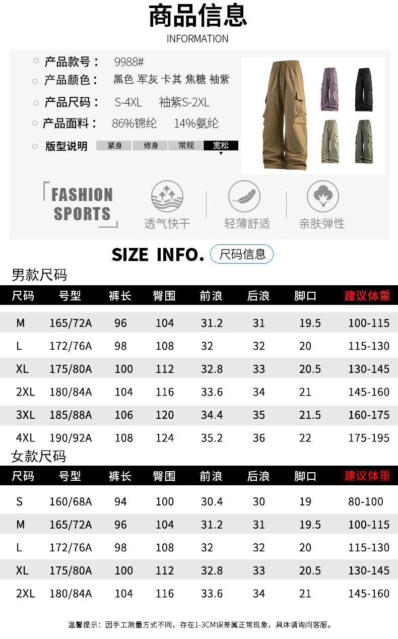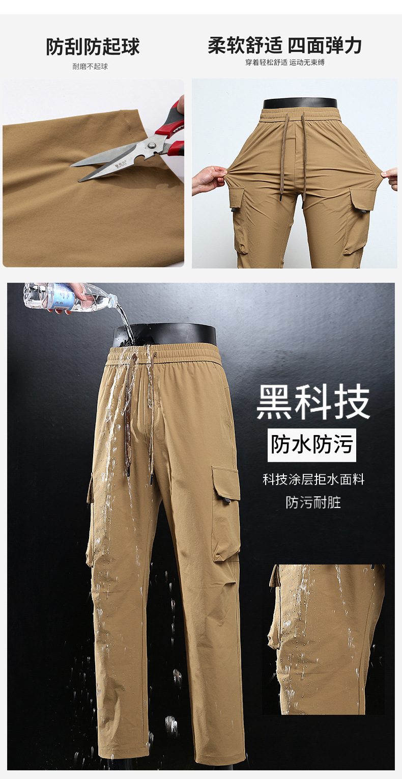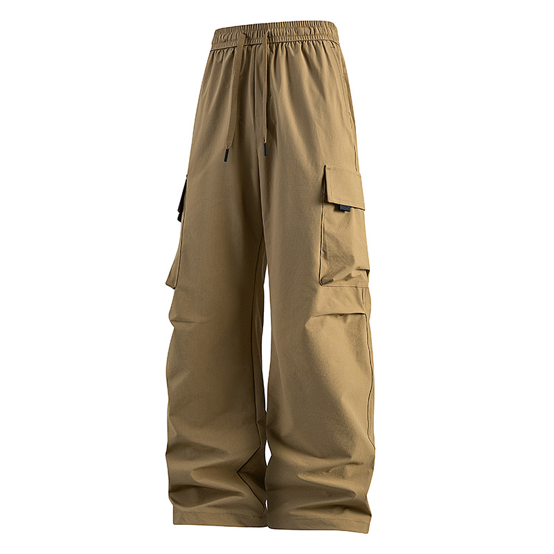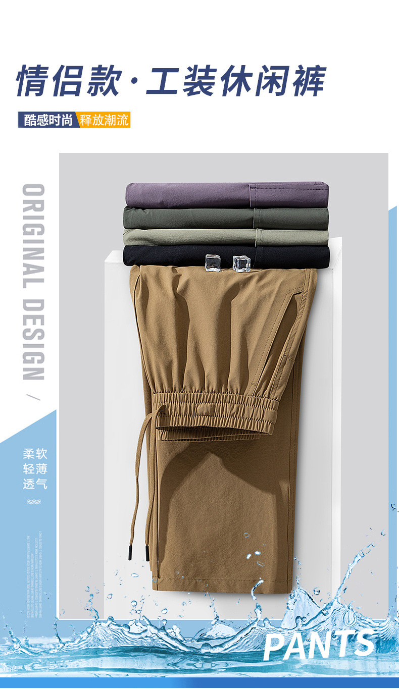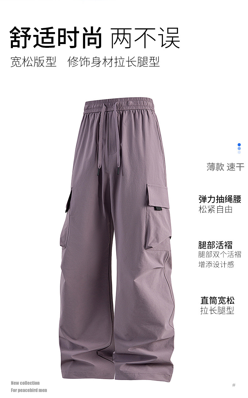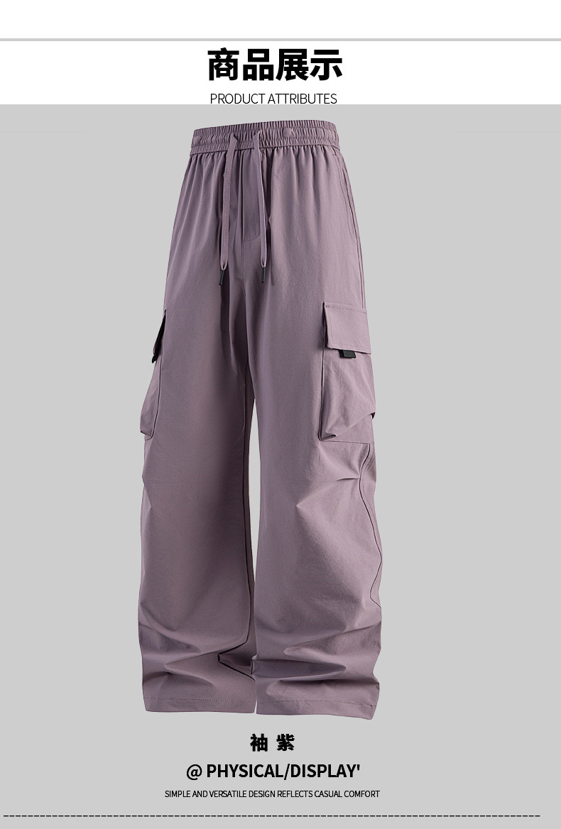 남성용 여름 얼음 느낌의 속건성 작업복, 통기성, 방수성, 루즈하고 드레이피한 야외용 경량 멀티 포켓 여성용 와이드 레그 팬츠
