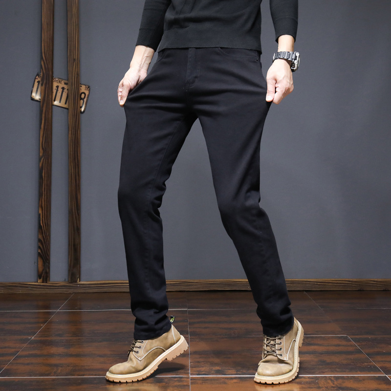 봄 여름 남성용 통근 고급 청바지 루즈 스몰 스트레이트 남성용 바지 2025 새로운 마이크로 신축성 긴 바지스토어 가기
