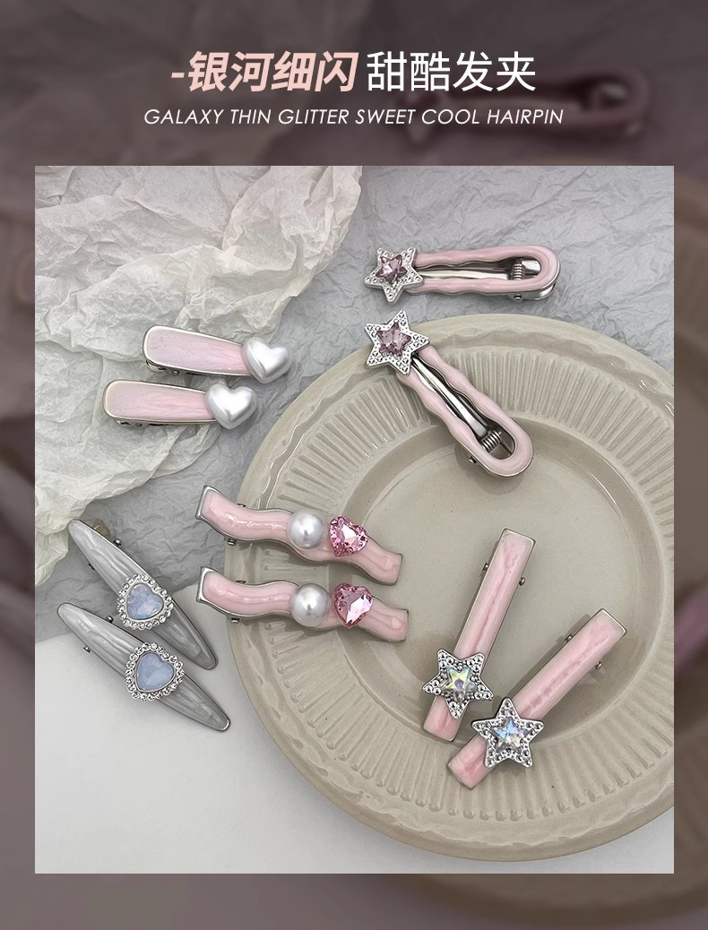 실버 파우더 스트리머 금속 헤어핀 여성용 y2k 깨진 머리핀 달콤한 쿨 올 매치 헤어 액세서리 사이드 앞머리 클립 헤드웨어 오리 지폐 클립