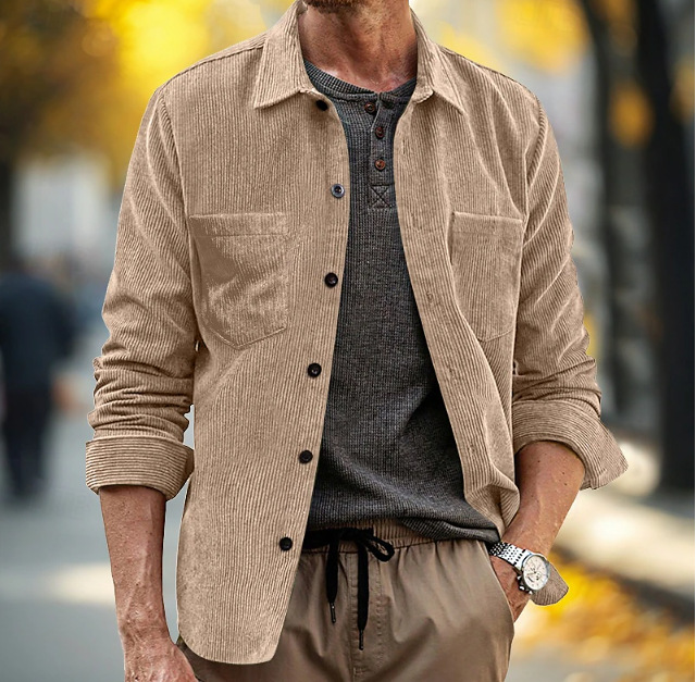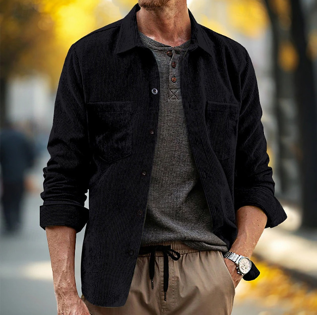 2025 독립 스테이션 대외 무역 봄, 가을 신작 남성 셔츠 코듀로이 긴팔 캐주얼 포켓 라펠 셔츠 재킷