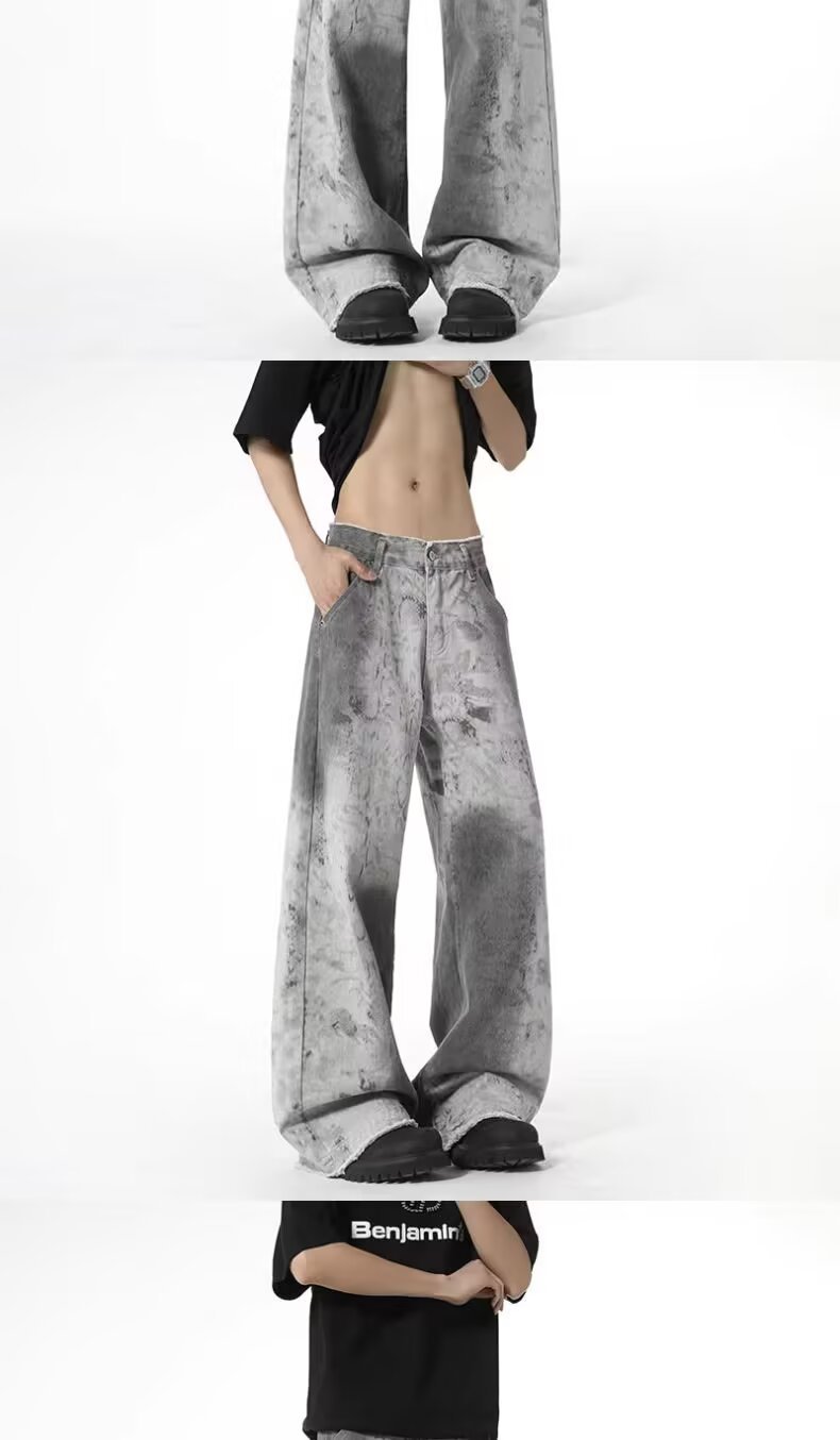 아메리칸 레트로 스플래시 잉크 워시드 뱀 패턴 청바지 남성 여름 하이 스트리트 틈새 루즈 와이드 레그 팬츠 스트레이트 팬츠스토어 가기