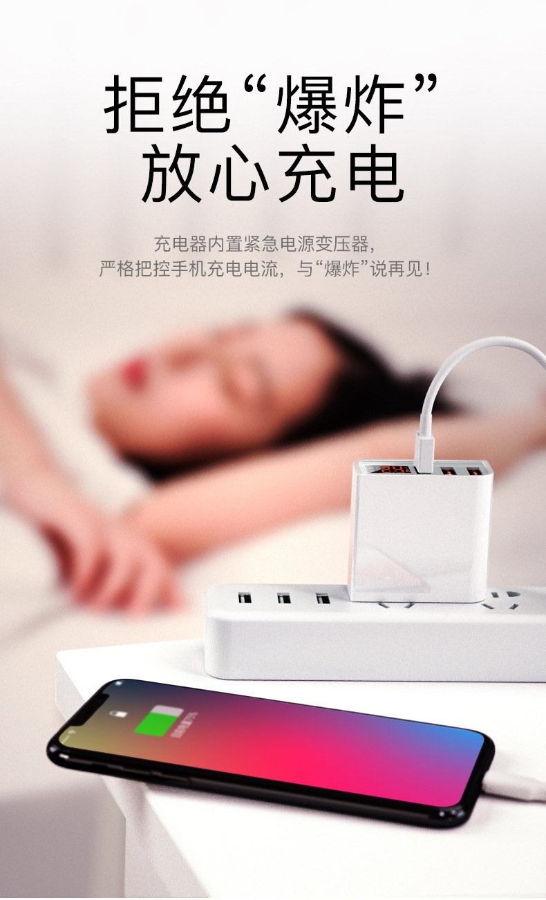 Apple Android Huawei에 적합한 멀티 포트 USB 충전기 디지털 디스플레이 3포트 및 4포트 다기능 고속 충전 플러그 소켓스토어 가기