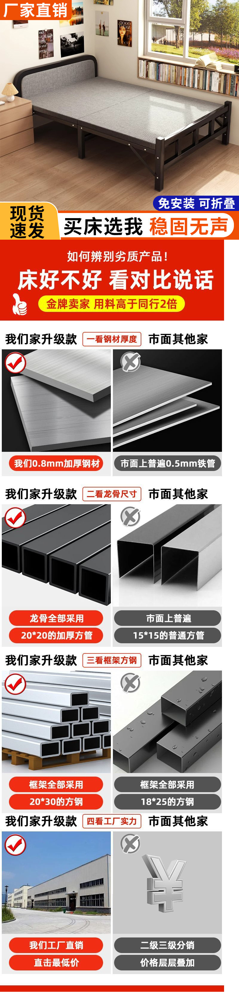 성인용 접이식 침대, 싱글 침대, 홈 렌탈 하우스 철제 침대, 간이 사무실 점심 시간스토어 가기