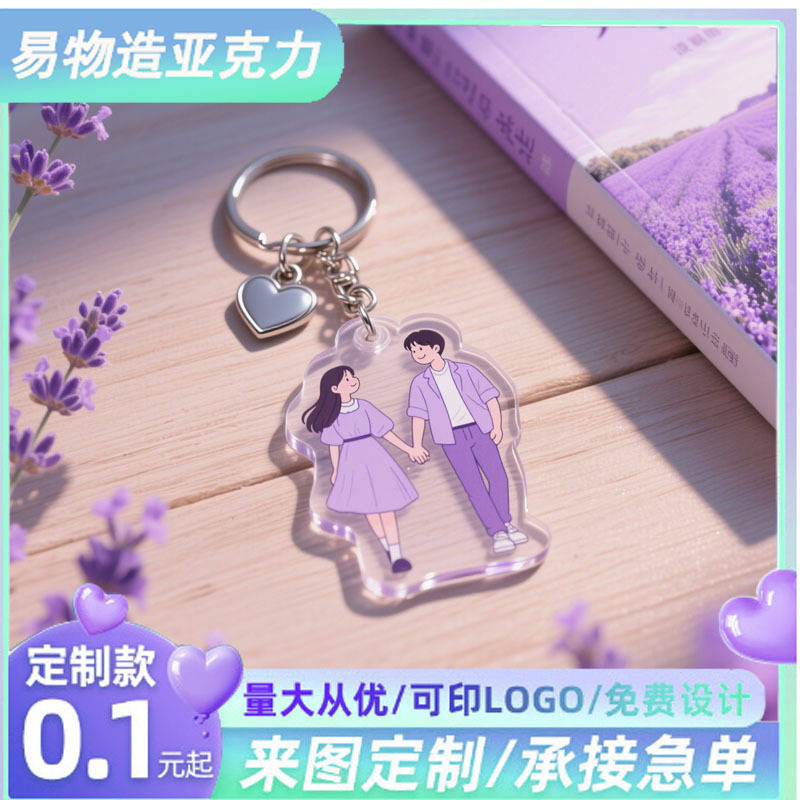양면 아크릴 키 체인 맞춤형 커플 만화 캐릭터 키 체인 회사 광고 작은 선물 펜던트스토어 가기