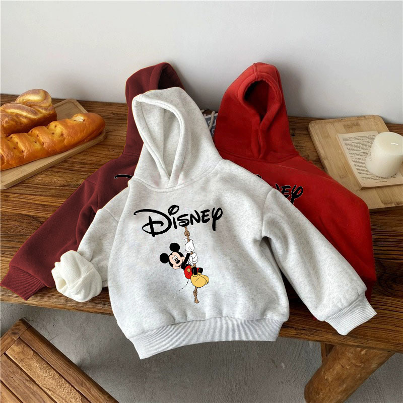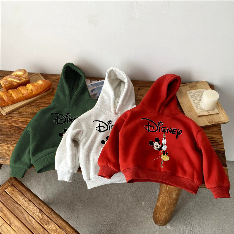 기모 어린이 후드 스웨터 가을과 겨울 2025 미키 만화 올 매치 귀여운 소년과 소녀 따뜻한 옷스토어 가기