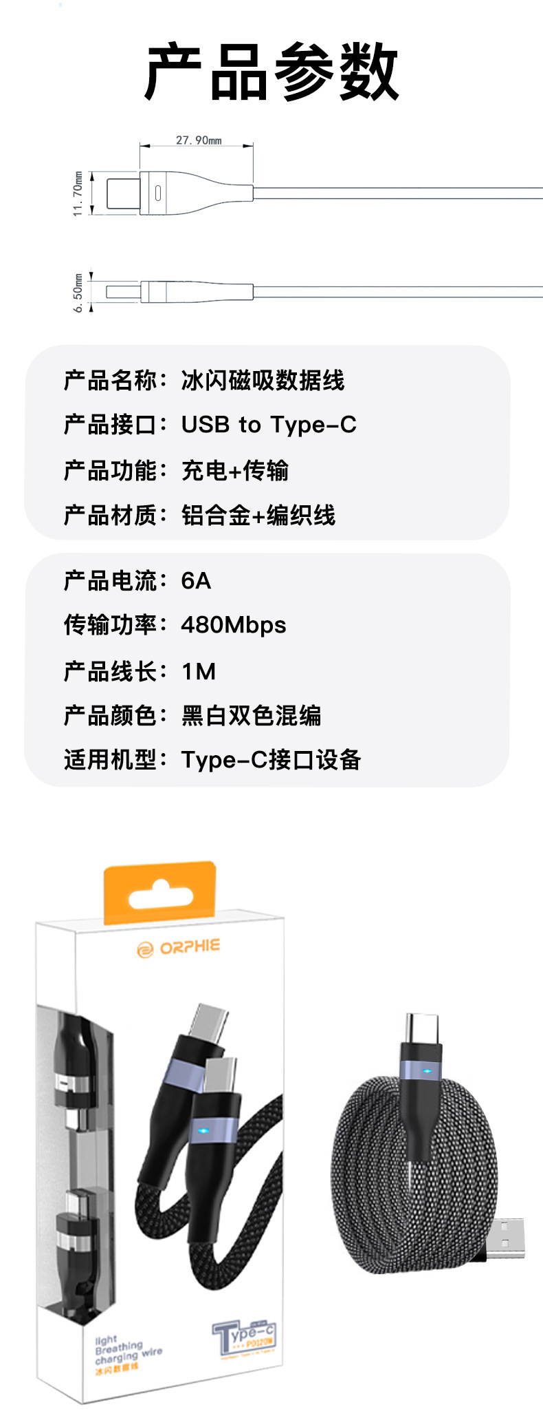 Type-c Apple 15 Android Huawei 데이터 케이블에 적합한 120W 새로운 휴대용 저장 자기 고속 충전 충전 케이블스토어 가기