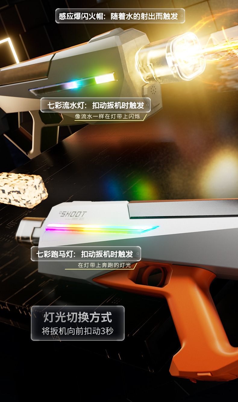 사이버 펑크 전기 연속 셀프 프라이밍 워터 건 라이트 베어 워터 건 대용량 인터넷 축하 폭발 Marquee 플래시 헤드