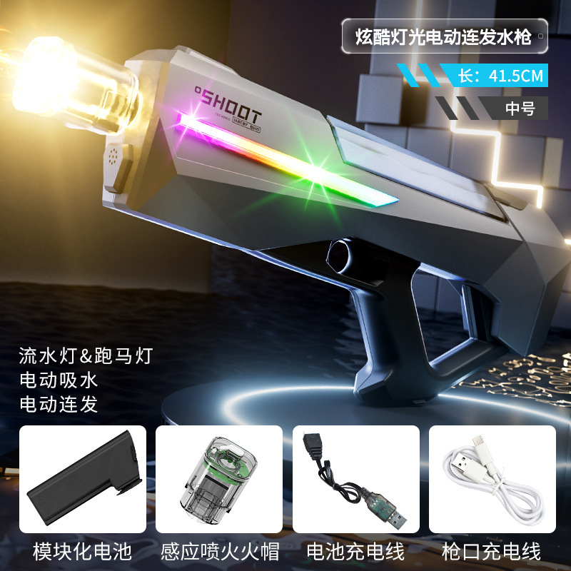 사이버 펑크 전기 연속 셀프 프라이밍 워터 건 라이트 베어 워터 건 대용량 인터넷 축하 폭발 Marquee 플래시 헤드스토어 가기